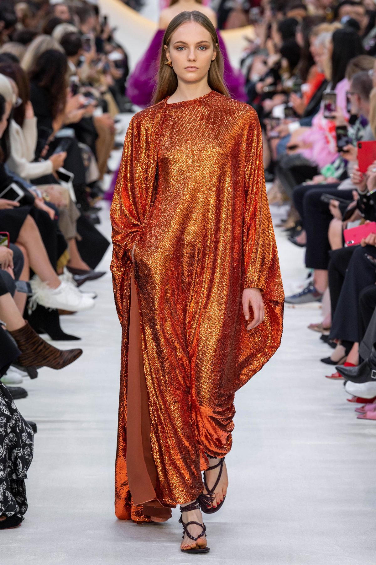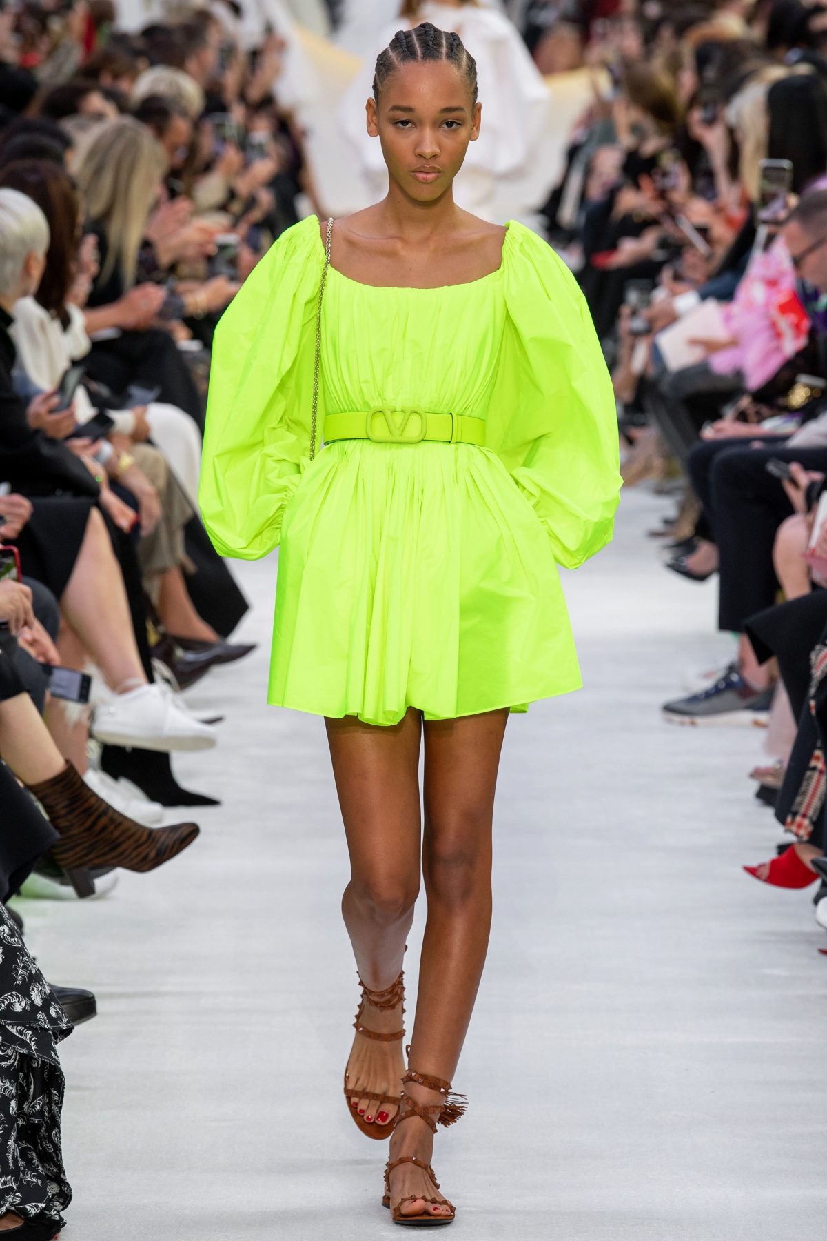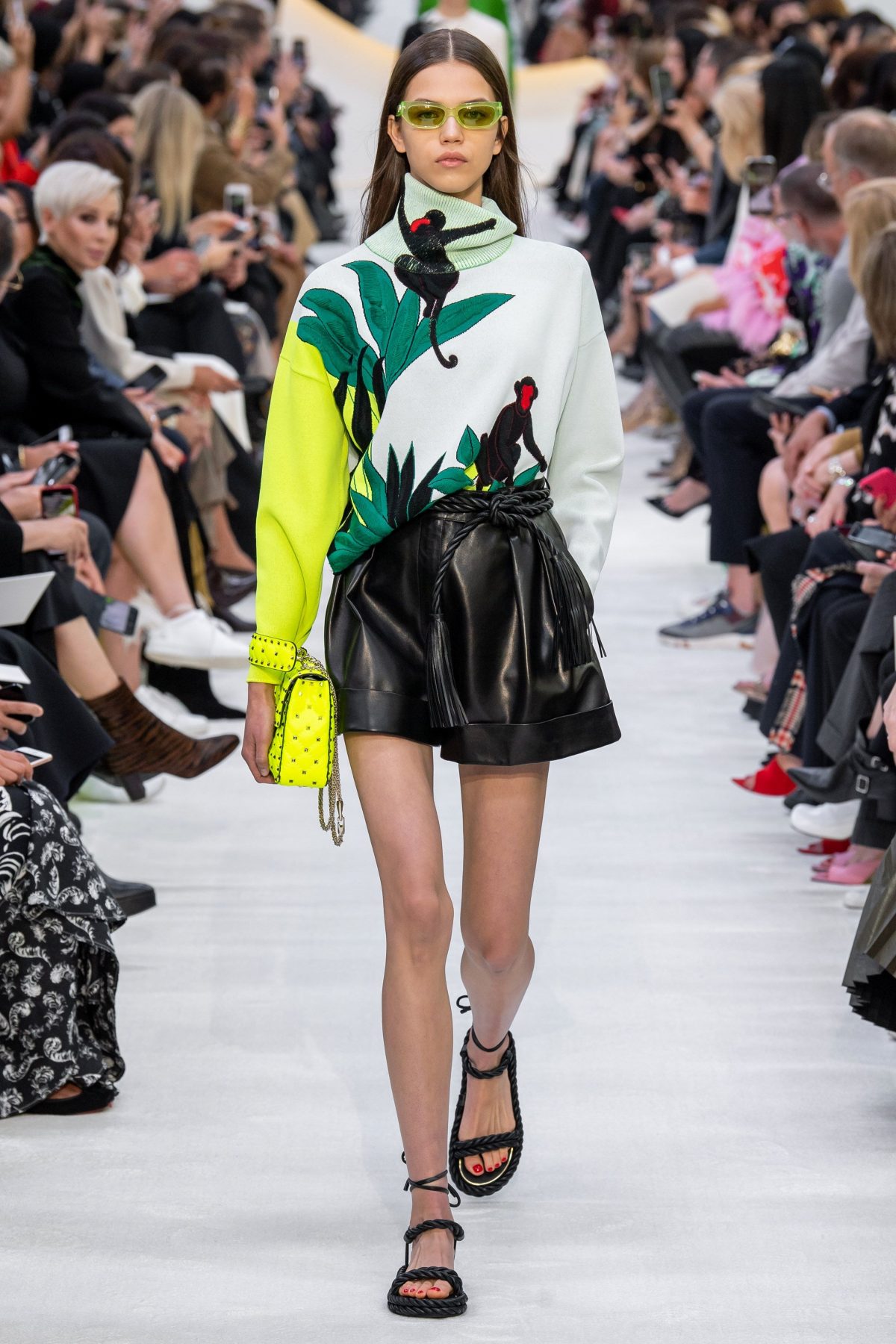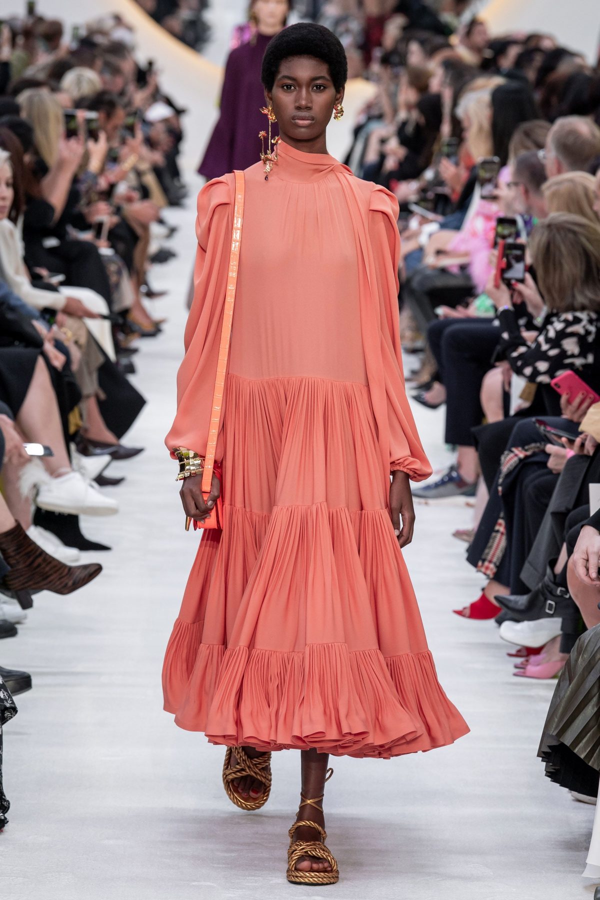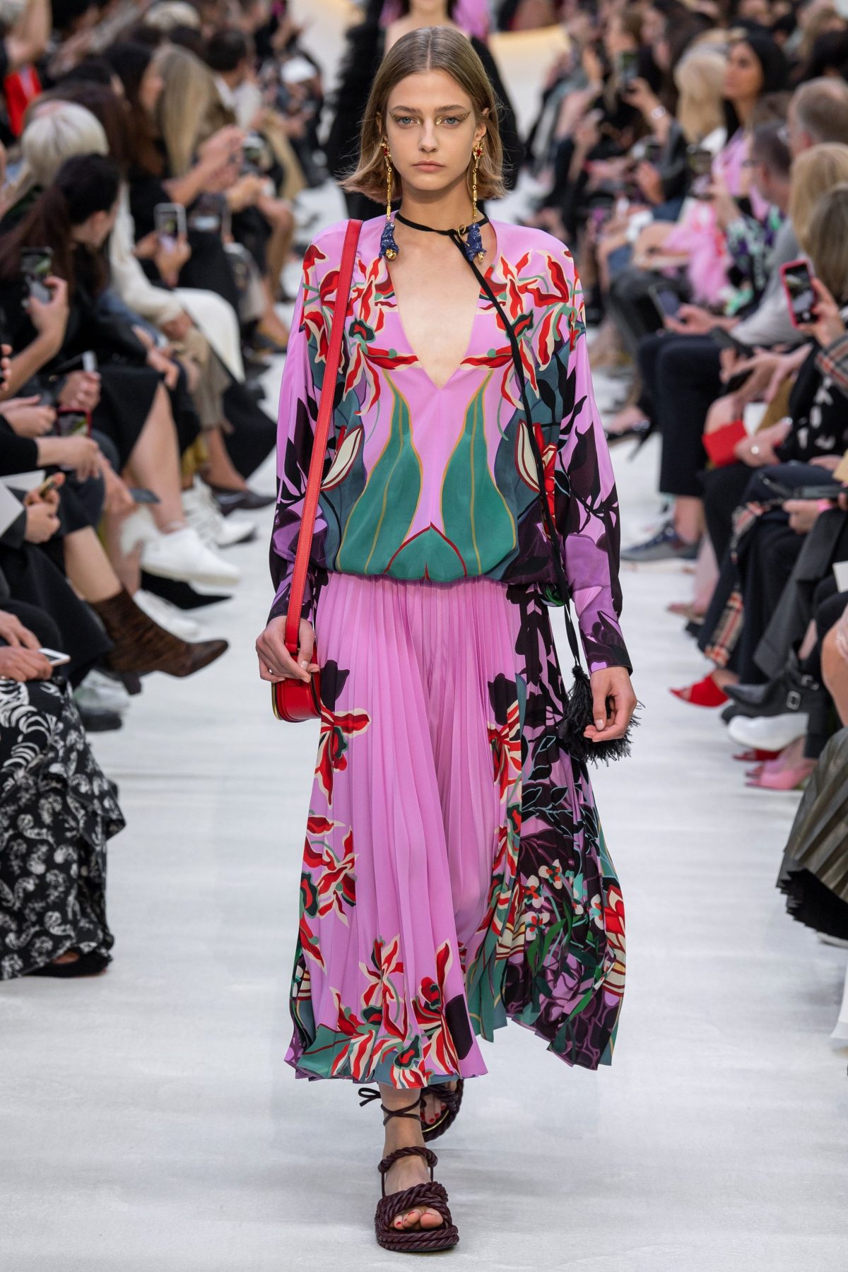 The purity of form was offset only by subtle glints of gold jewellery and shimmer-y makeup before compact bursts of fluorescent colour charged forth as single-tone dresses. Then came bold prints of the jungle variety, increasing in complexity with layers of sequins and embellishments, before the saturation paled once more, returning to the painting technique of grisaille. “It brings the attention from the dress per se to the personality that gives life to it, from the object to the individual” Piccioli mentioned in his show notes. The show closed with an all-white sheer polka-dot tulle gown, iced with meandering pleated ruffles of immaculate craftsmanship like a paper-thin sculpture. And then the audience was brought to their feet once more for a standing ovation as Minnie Ripperton’s “Lovin’ You” fluttered in the background.