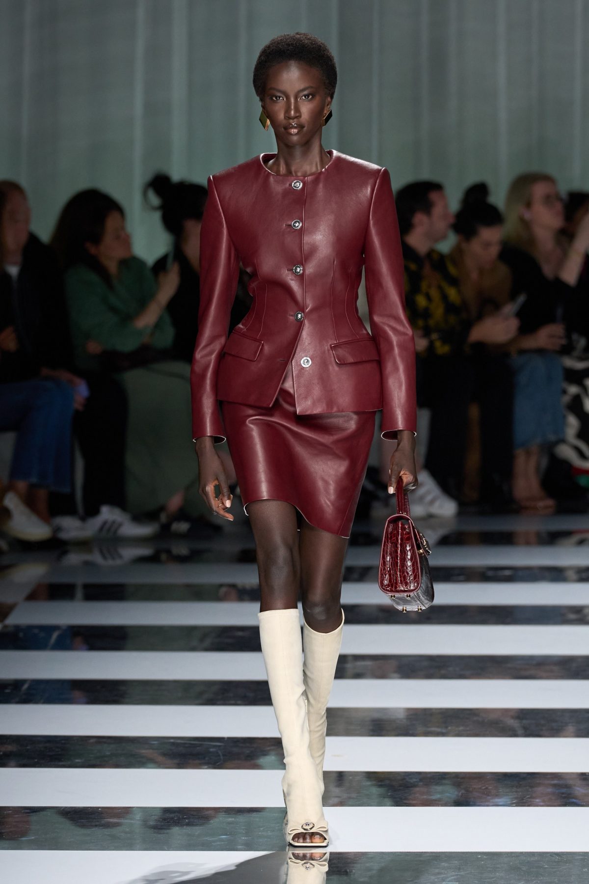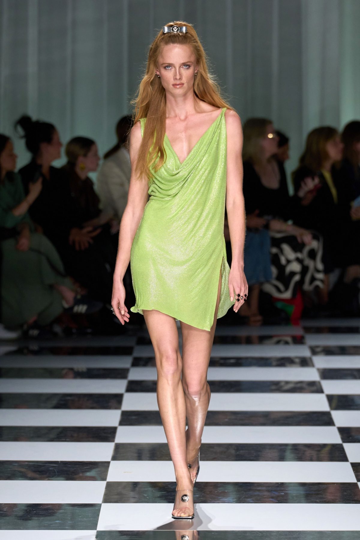 Taking Barbiecore to another anatomical level, Claudia Schiffer – 53, with a portrait in the attic – closed the Versace show in a second-skin chequerboard chainmail dress. Like the blonde bombshell edition of a Grecian statue, she personified a collection steeped in the timeless trademarks of the house, updated for a new generational mindset. The same evening, Apple premiered its The Super Models docuseries. Centred around four of Schiffer’s fellow legends – with an appearance by Donatella Versace – the buzz around it is testament to the enduring fascination (and agelessness) of the original supers across generations, as well as the culture that surrounded them in the early ’90s. Versace played a huge part in shaping that mentality and the attitude that came with it, and this season’s collection was very much the wardrobe-raiding child of that legacy.