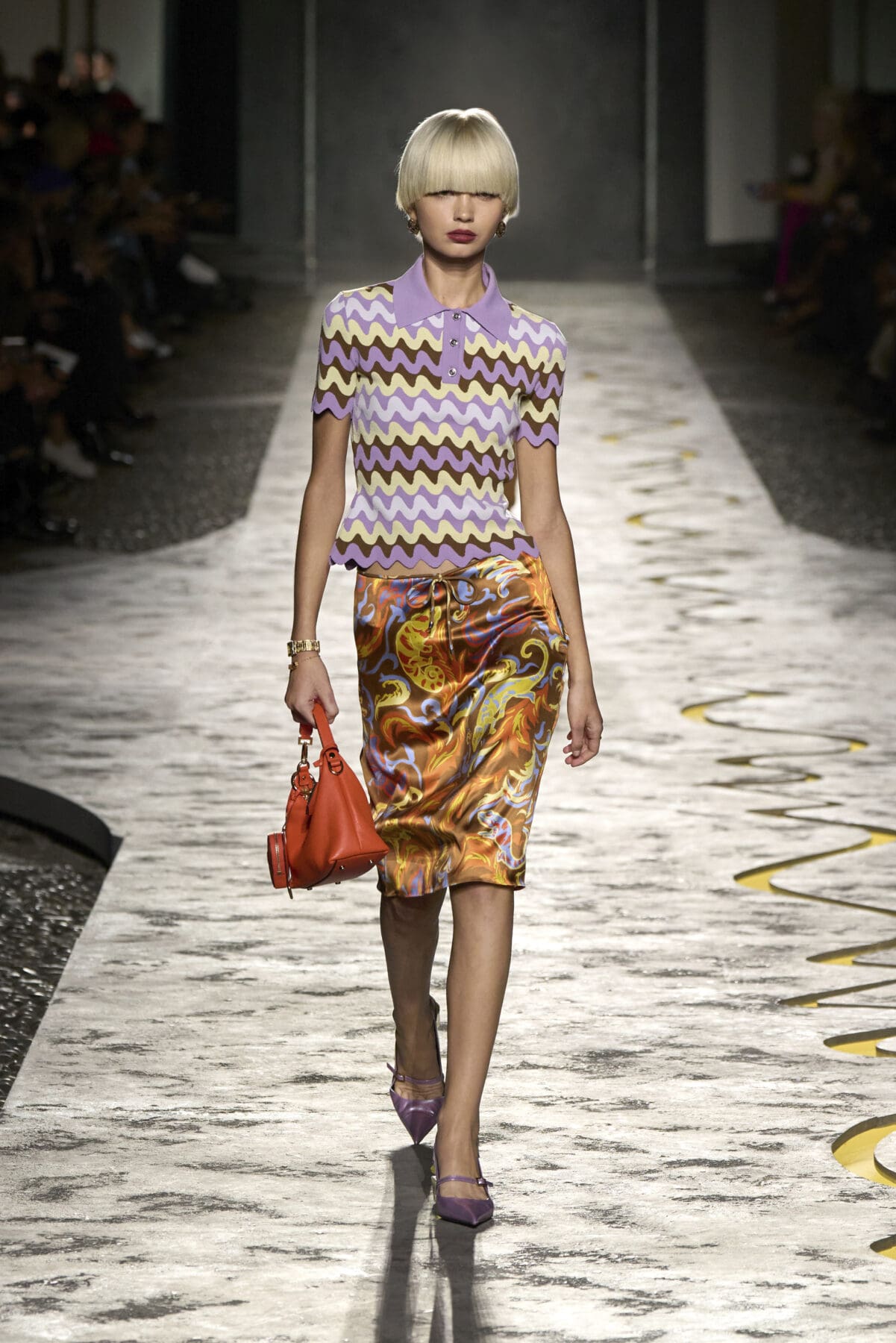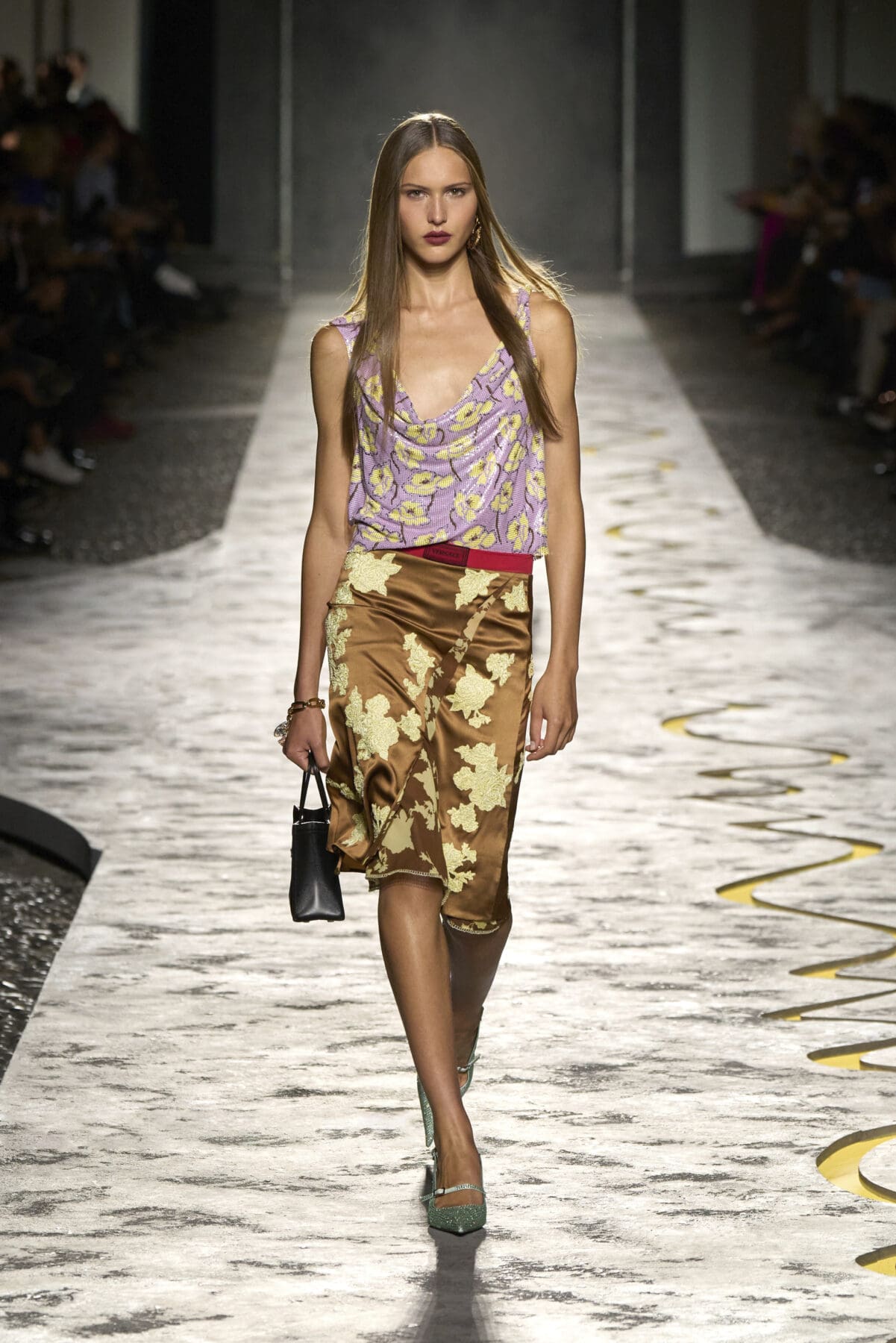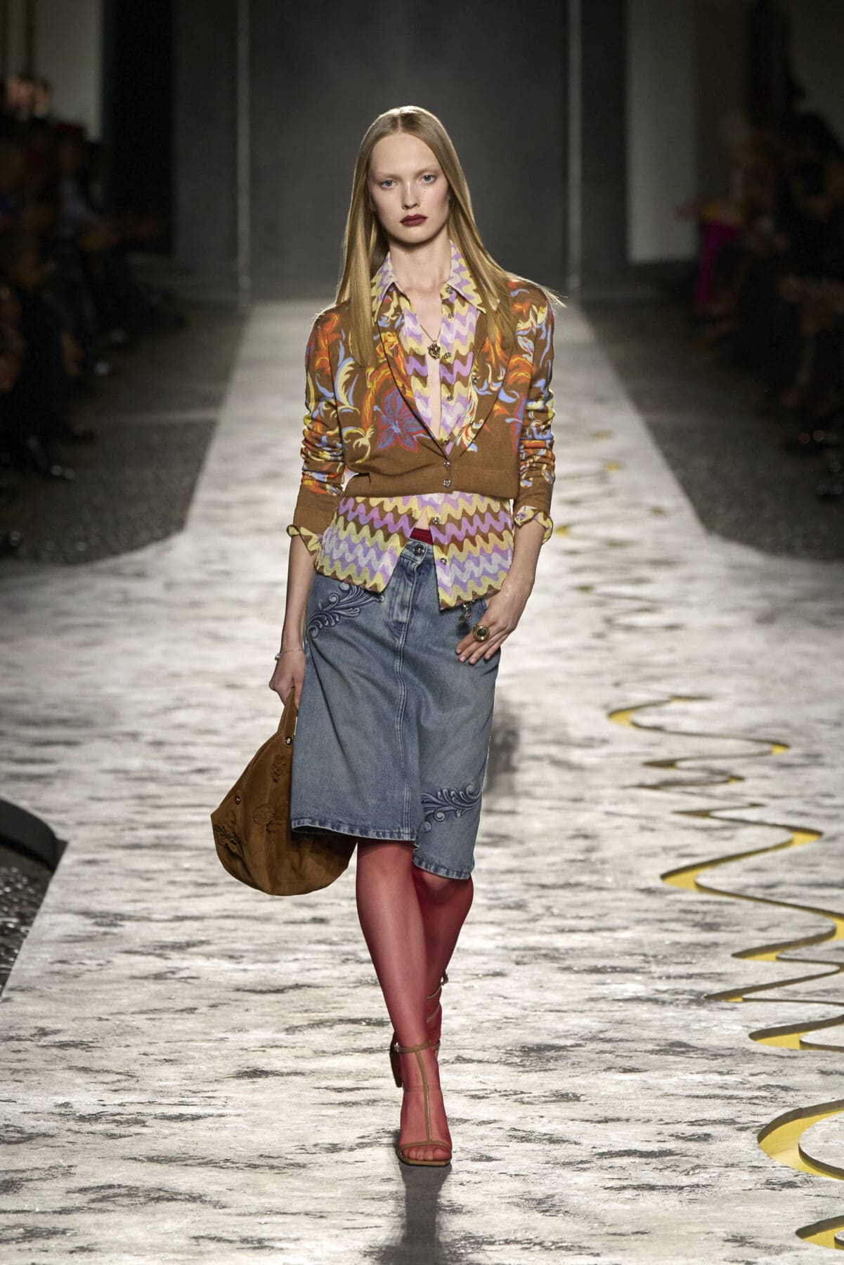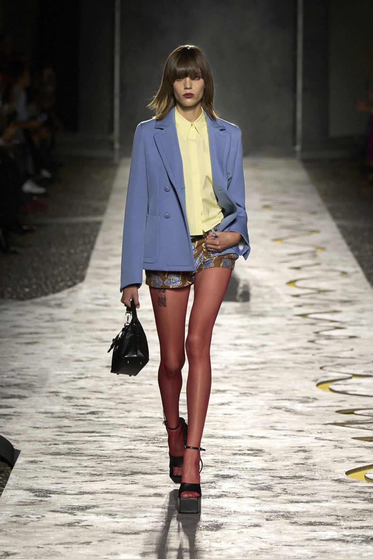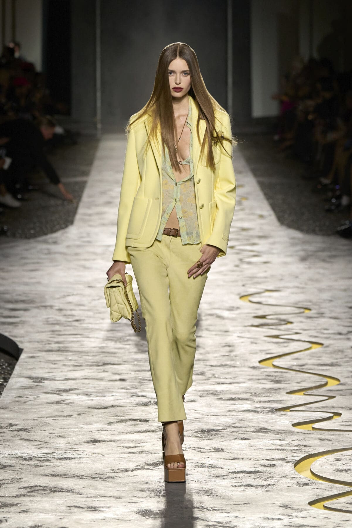 Versus was Donatella’s baby, a diffusion collection she designed in her own image, while her older brother Gianni took care of the main line. At a press conference, she said she was drawn to spring ’97, which was shown in New York in October ’96, because “it was a joyful moment.” In the ’90s, “there was freedom, happiness, not too much thinking, and being more casual [about] putting your clothes together,” she explained.