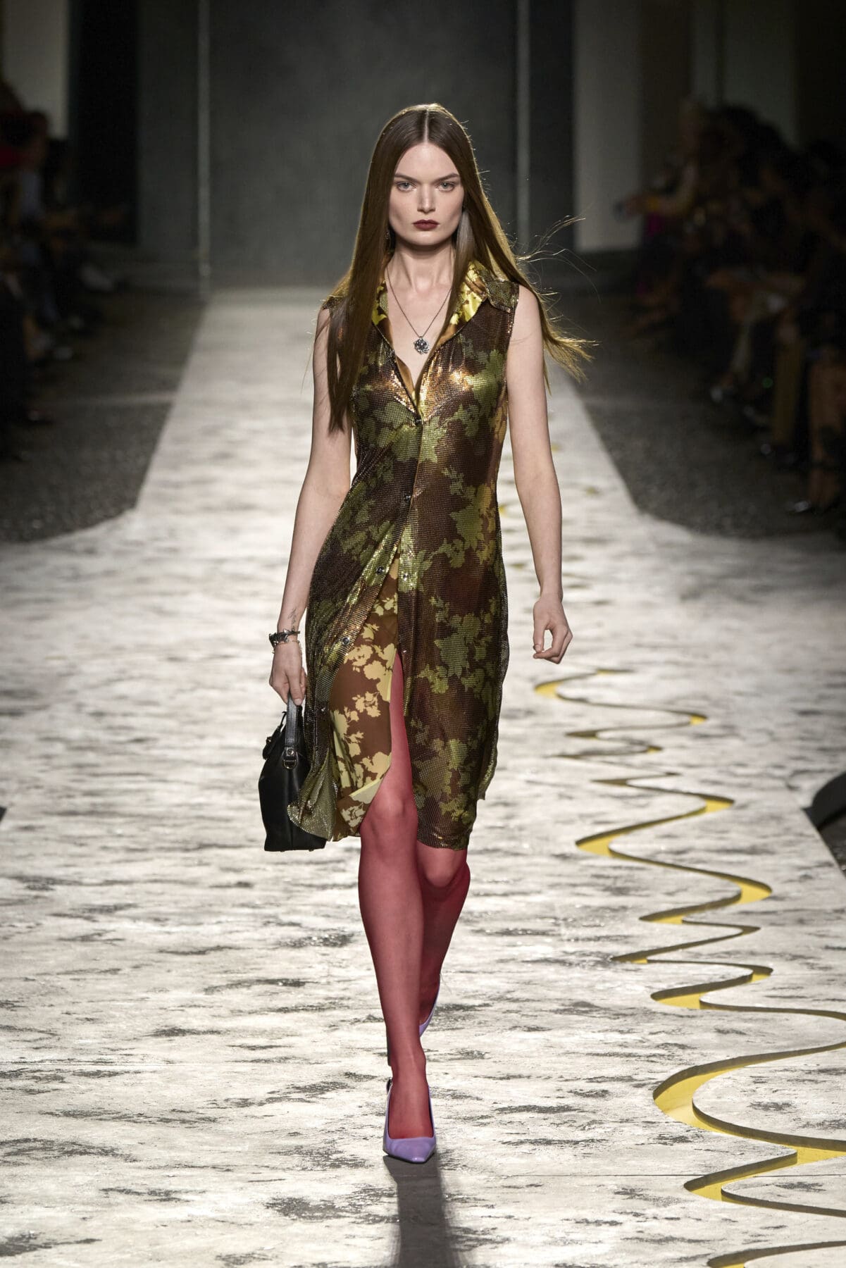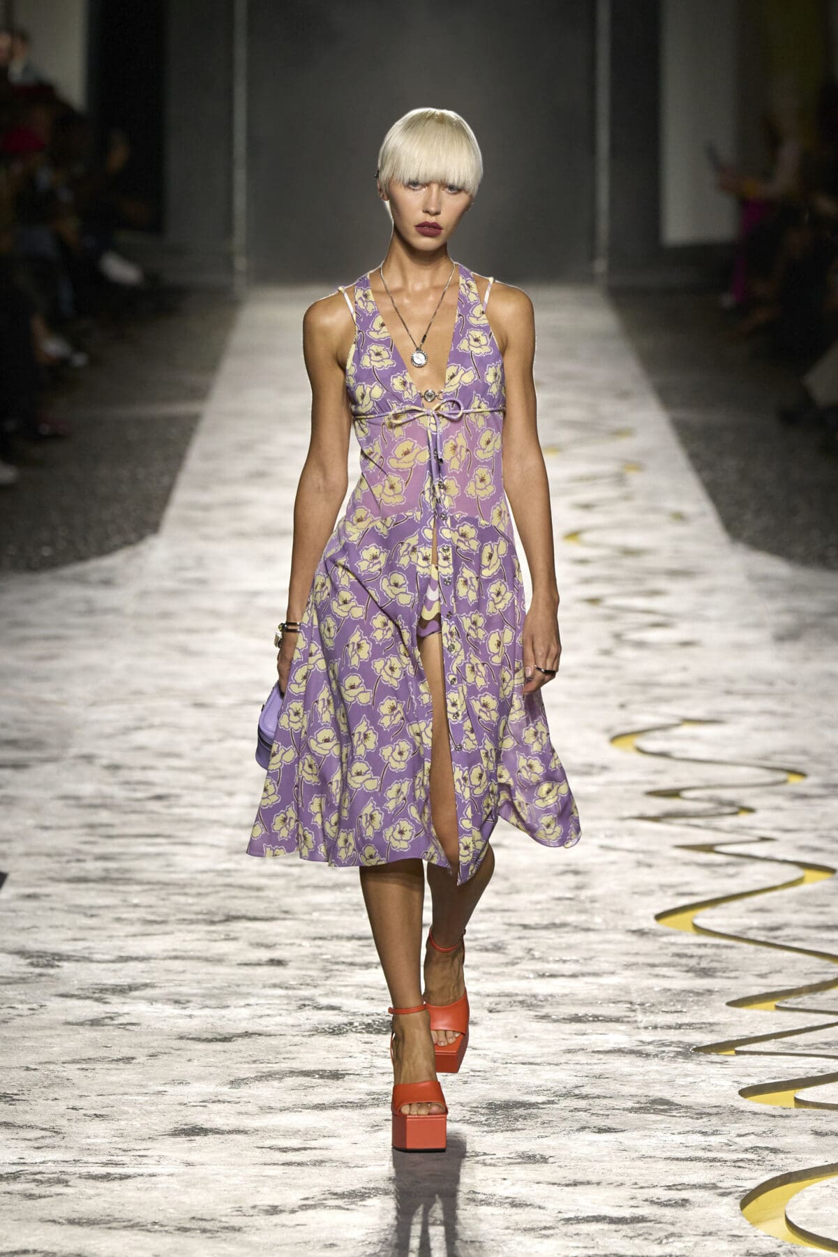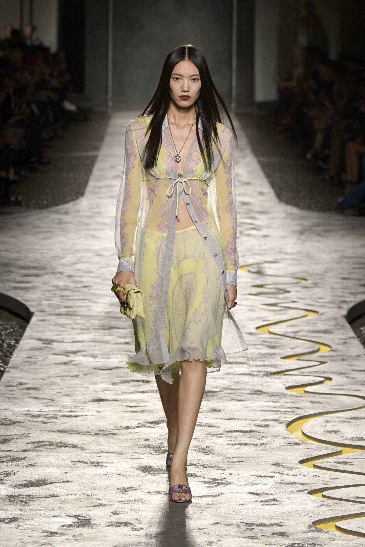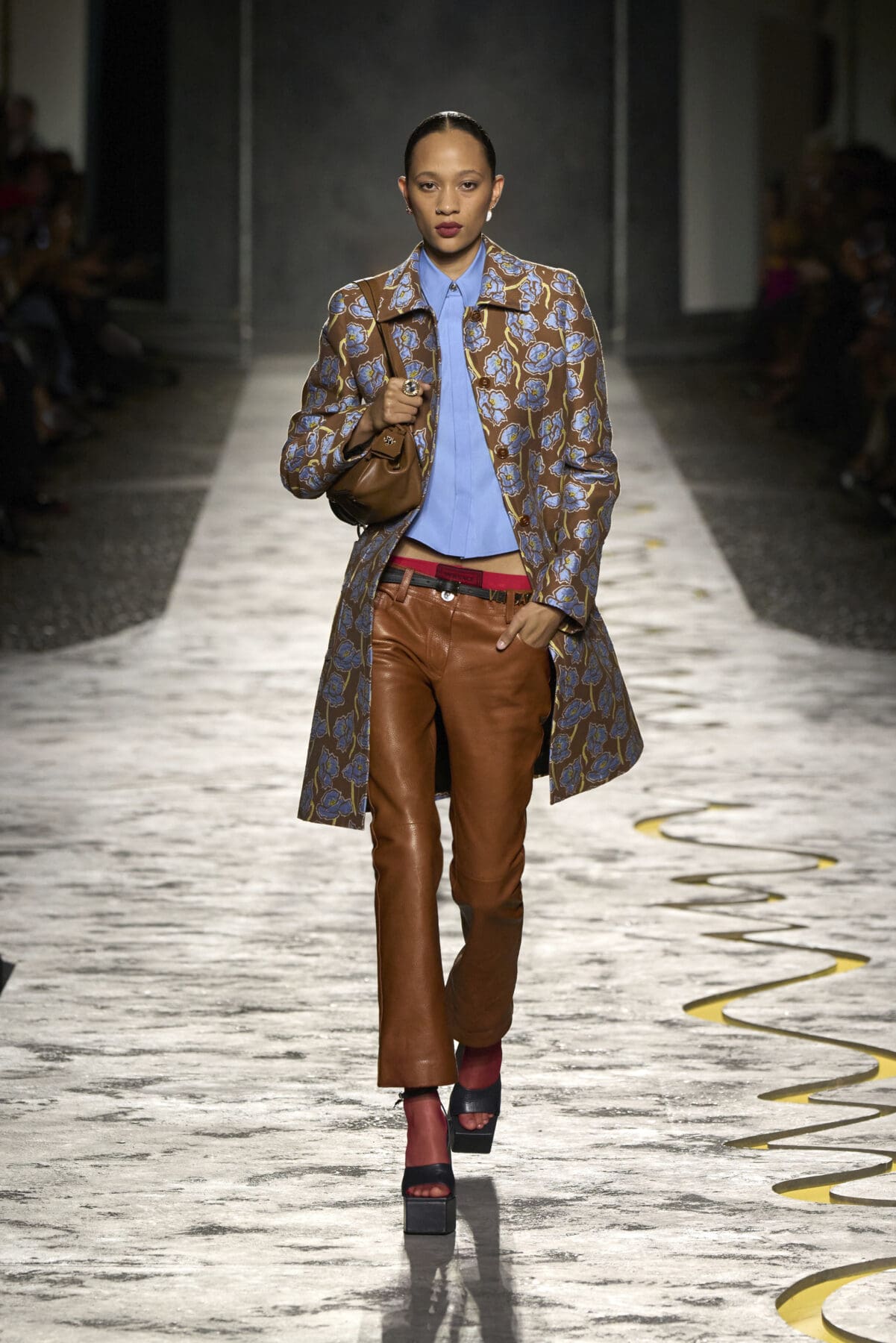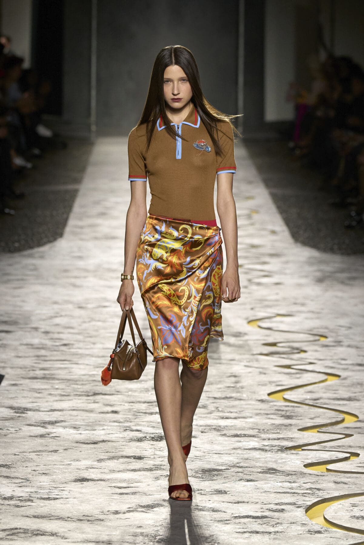 Versus was Donatella’s baby, a diffusion collection she designed in her own image, while her older brother Gianni took care of the main line. At a press conference, she said she was drawn to spring ’97, which was shown in New York in October ’96, because “it was a joyful moment.” In the ’90s, “there was freedom, happiness, not too much thinking, and being more casual [about] putting your clothes together,” she explained.