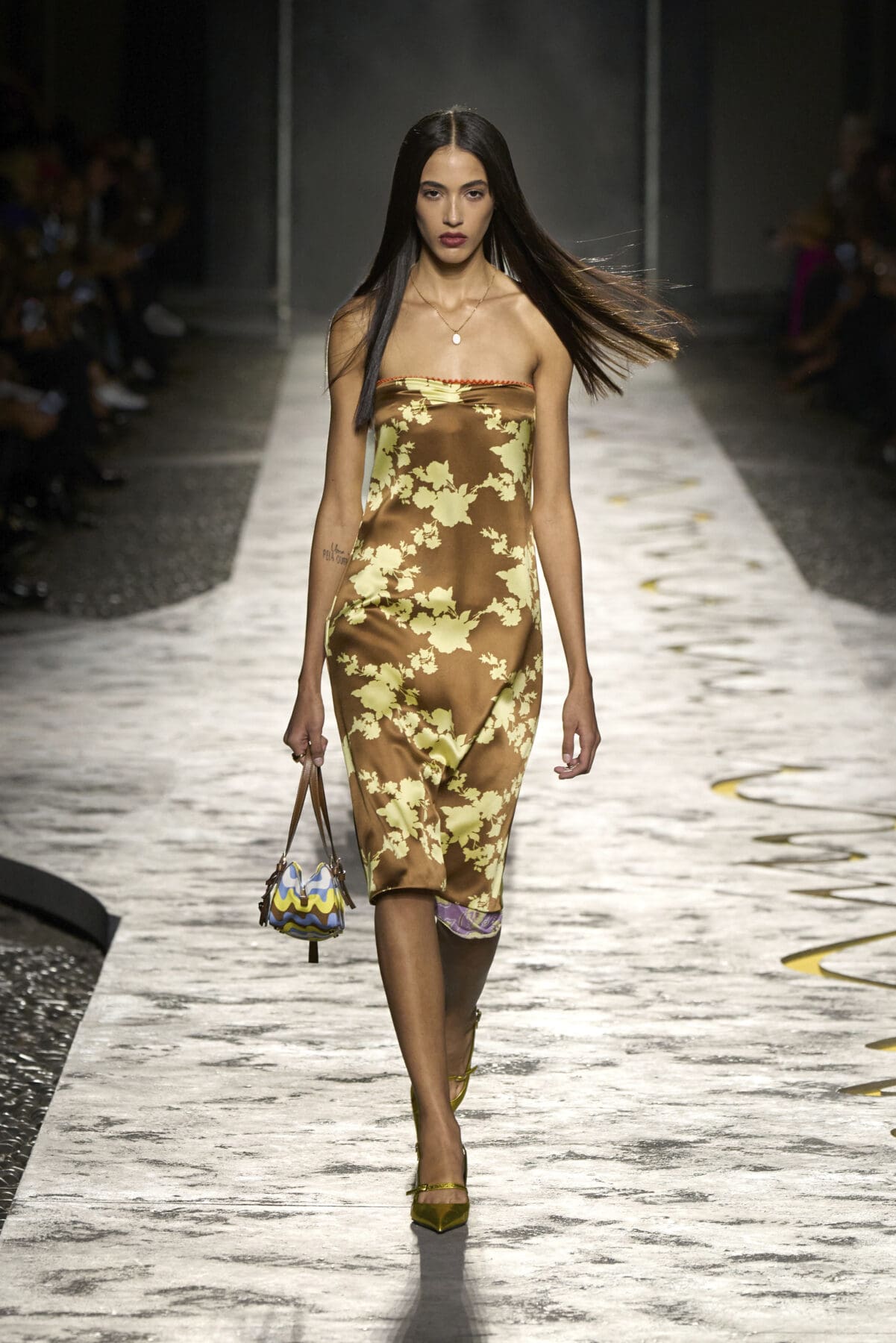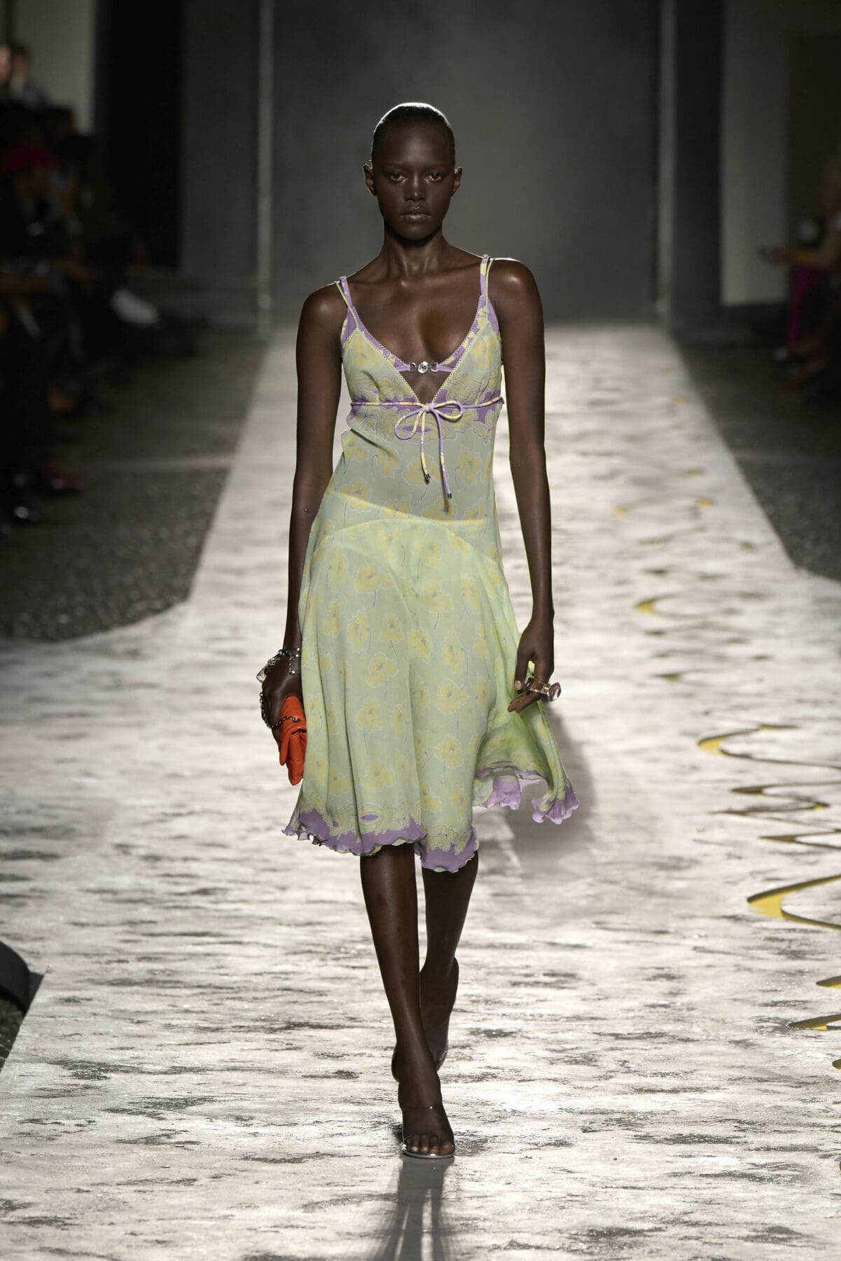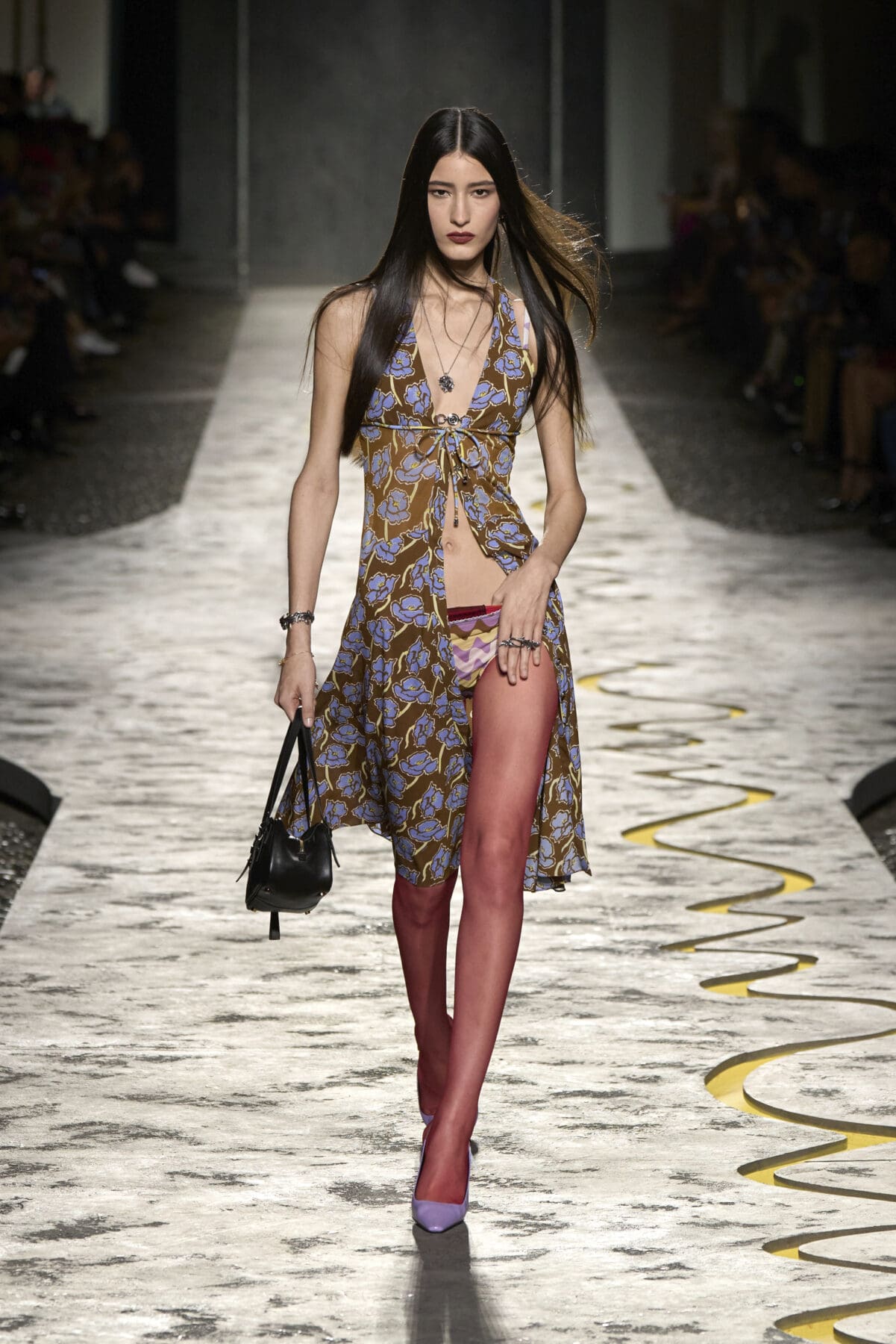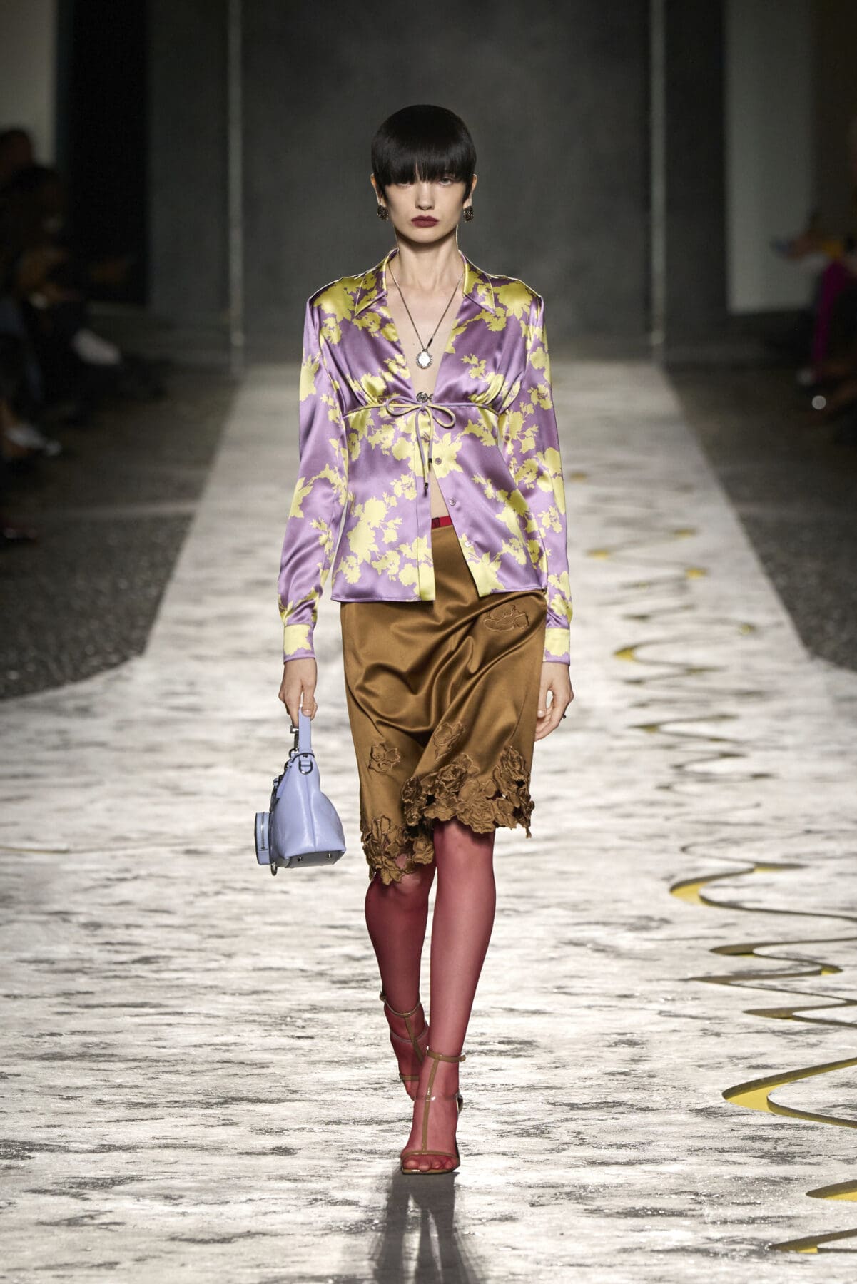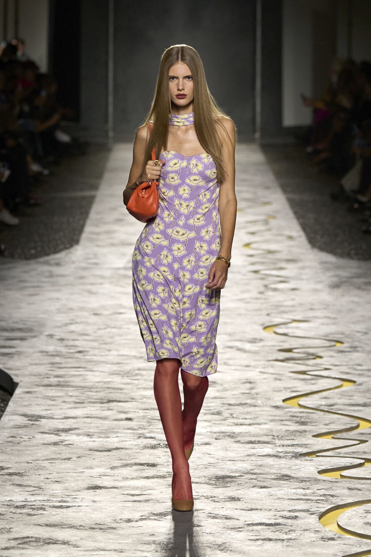 Versus was Donatella’s baby, a diffusion collection she designed in her own image, while her older brother Gianni took care of the main line. At a press conference, she said she was drawn to spring ’97, which was shown in New York in October ’96, because “it was a joyful moment.” In the ’90s, “there was freedom, happiness, not too much thinking, and being more casual [about] putting your clothes together,” she explained.