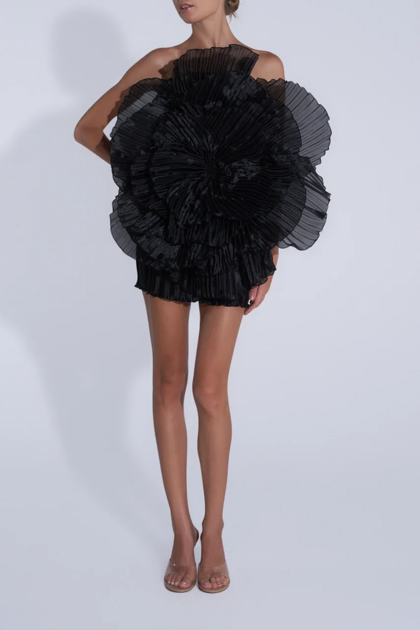 I often opt for midi or maxi hemlines when it comes to dressier occasions, but this floral mini dress from Australian label L’idée is too cute to pass up. I’d style it with chunky black pointy boots for a night out.