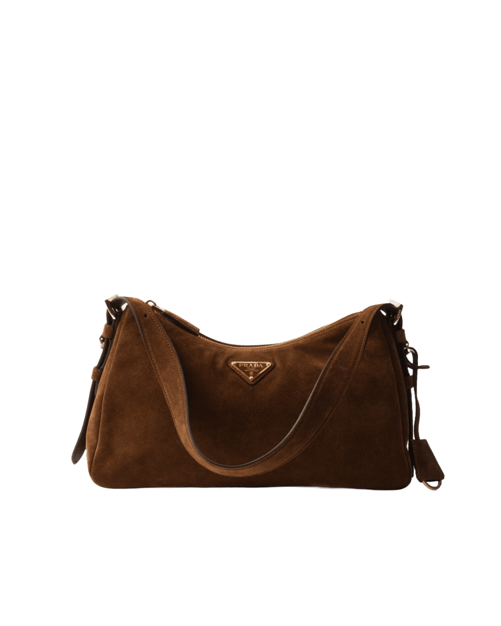 Prada Aimée Medium Suede Shoulder Bag In Cocoa Brown