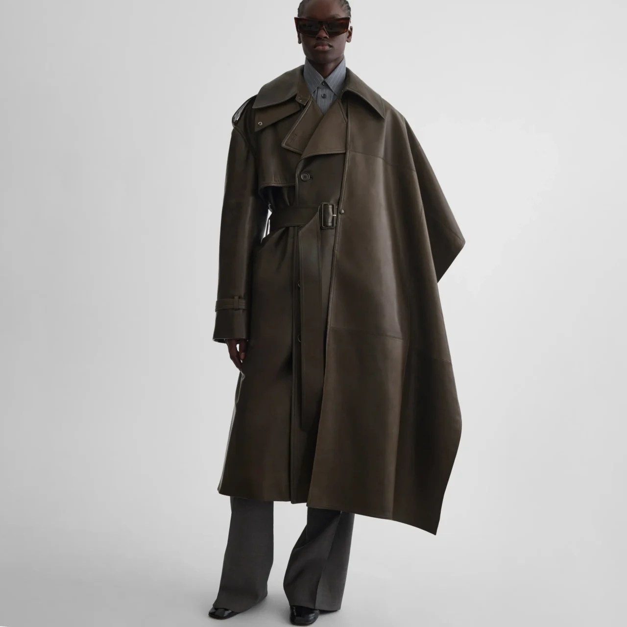 Phoebe Philo Khaki Leather Scarf Trench Coat