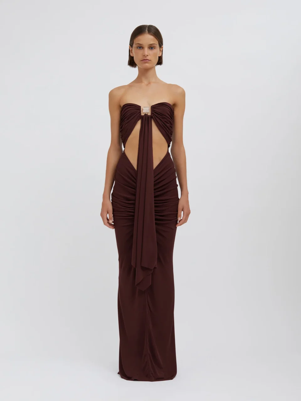 Christopher Esber Bezel Quartz Disconnect Dress In Mahogany
