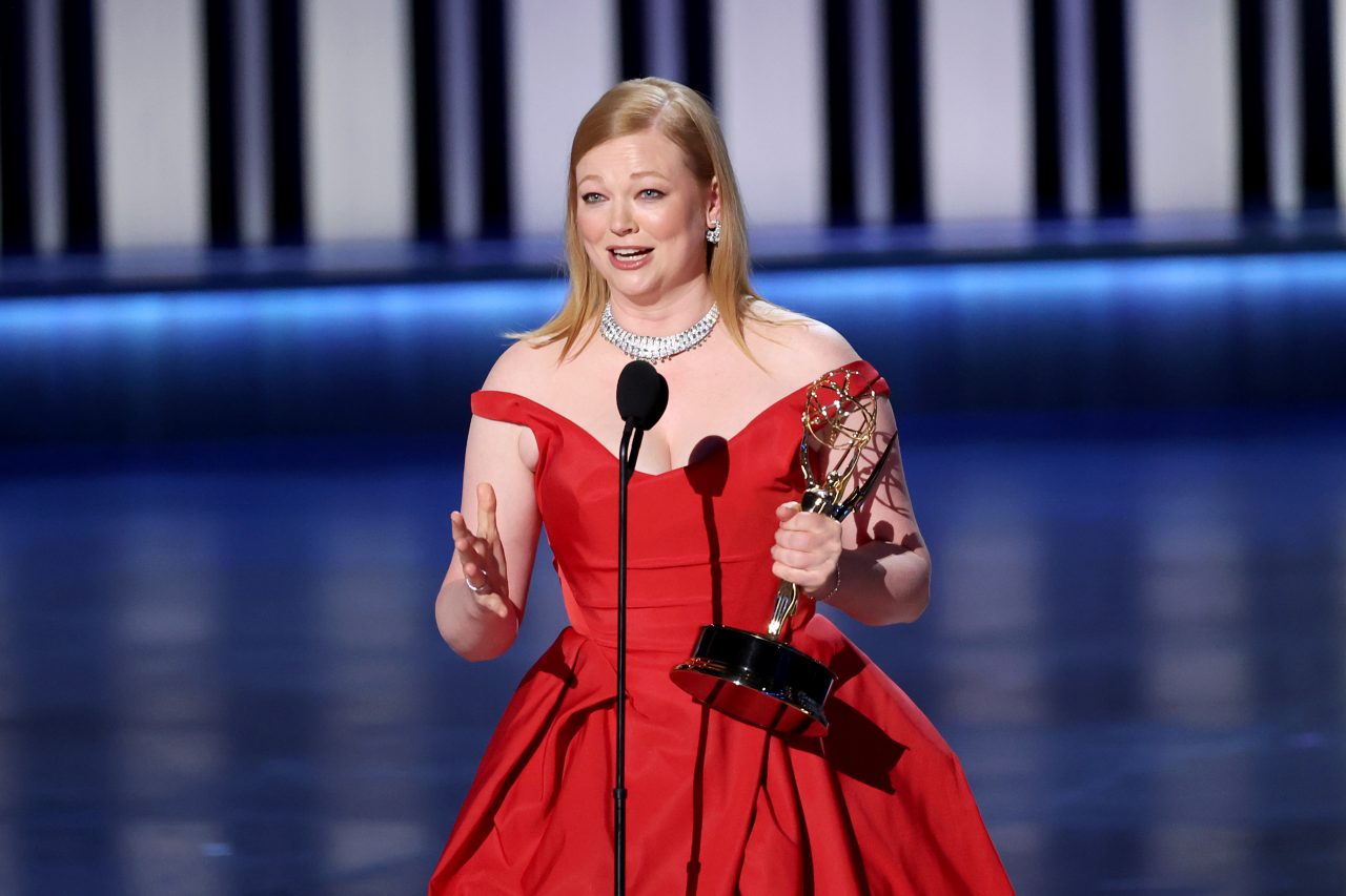 LOS ANGELES, CALIFORNIA - JANUARY 15: Sarah Snook accepts the Outstanding Lead Actress in a Drama Series award for “Succession” onstage during the 75th Primetime Emmy Awards at Peacock Theater on January 15, 2024 in Los Angeles, California. (Photo by Monica Schipper/WireImage)
