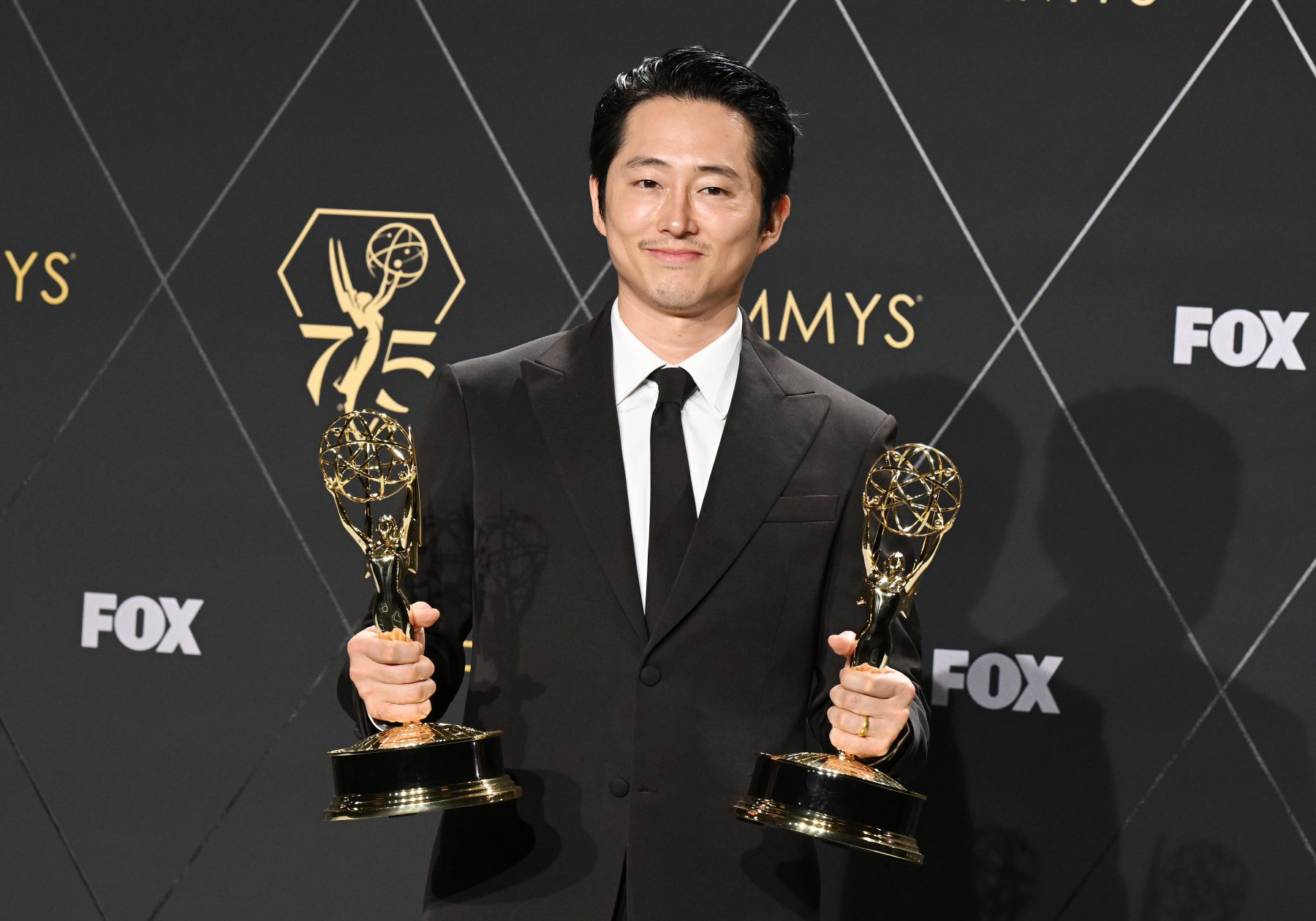 Steven Yeun, winner of Outstanding Lead Actor In A Limited Or Anthology Series Or Movie and Outstanding Limited Or Anthology Series for "Beef," poses in the press room at the 75th Primetime Emmy Awards held at the Peacock Theater on January 15, 2024 in Los Angeles, California. (Photo by Gilbert Flores/Variety via Getty Images)