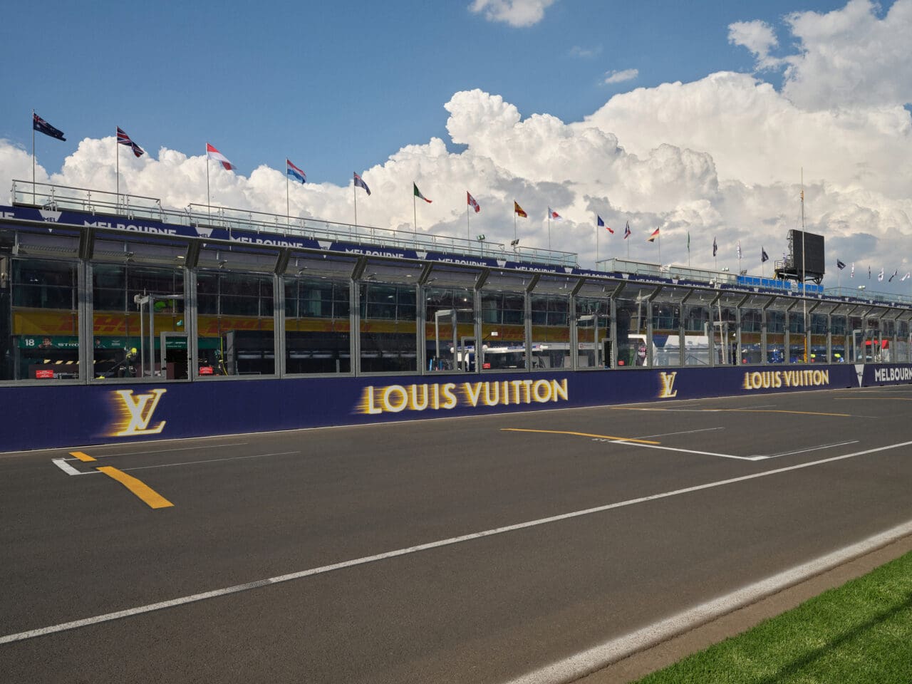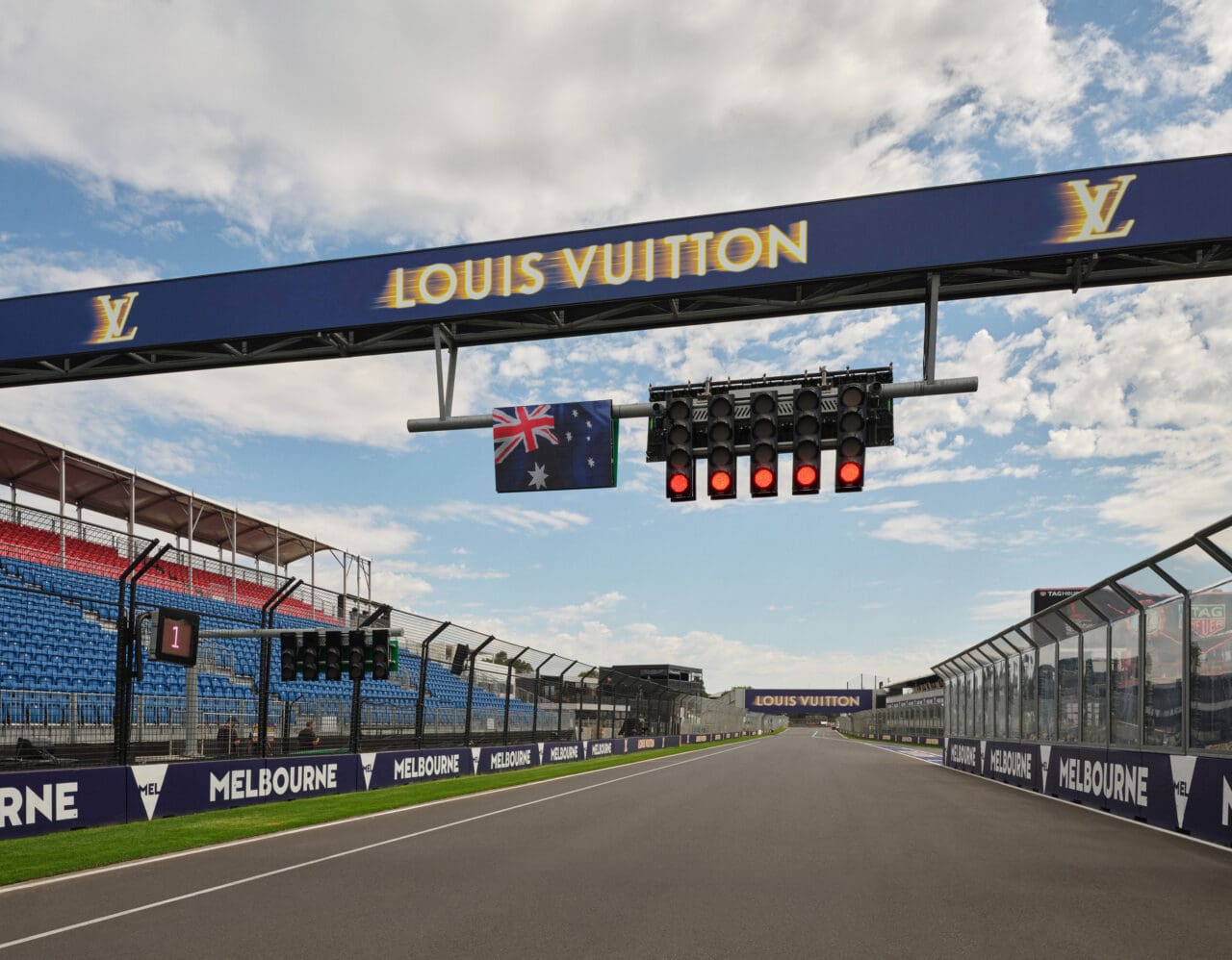 除了設計獎盃行李箱,Louis Vuitton的創新精神體現在比賽場地各個角落。品牌為澳洲戰設計充滿動感的品牌標誌,在賽道、護欄和不同位置展示,為場地帶來速度感和熾熱的感覺,致敬F1追求的極致速度。