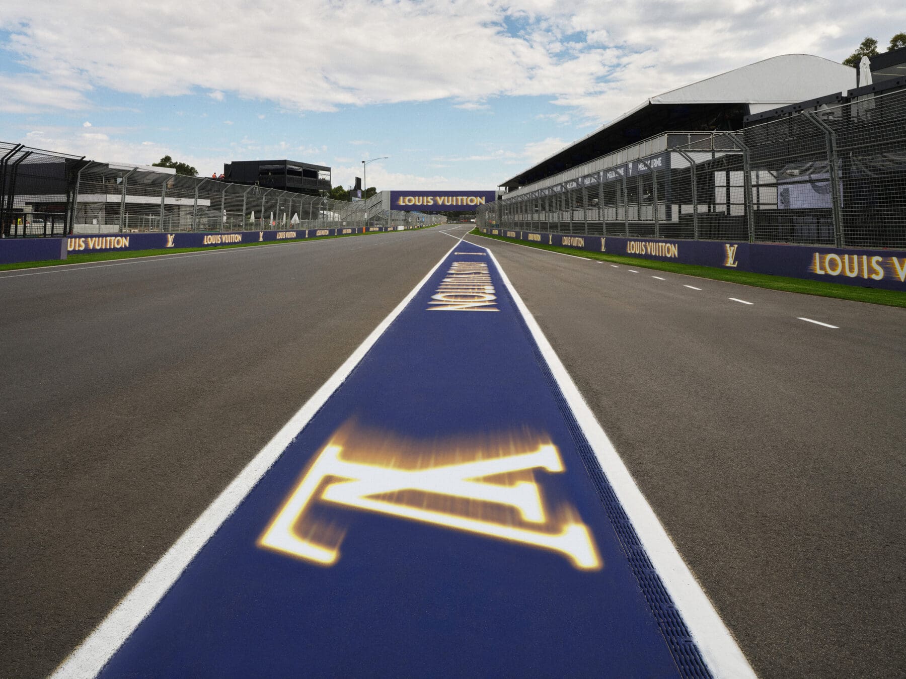 除了設計獎盃行李箱,Louis Vuitton的創新精神體現在比賽場地各個角落。品牌為澳洲戰設計充滿動感的品牌標誌,在賽道、護欄和不同位置展示,為場地帶來速度感和熾熱的感覺,致敬F1追求的極致速度。