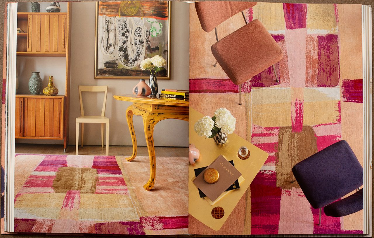 雖說是工廠,但每張地氈的生產過程至今仍非常依賴人手完成,工匠的知識與手藝也成為了 Fort Street Studio 的命脈。在走進後台之餘,兩人同時在書內撰文,親身講述每件作品所面對的挑戰。其標誌式設計——猶如油畫作品般的地氈,顛覆了當代地氈工業,並為室內設計帶來了新景象。書中的第二部則是一場眼睛盛宴,把我們帶到這些作品最後的「歸宿」——從極簡現代空間、充滿日式禪意的客廳、或是極盡浮誇的工作室,Fort Street Studio 的地氈都成為了這些空間最不可或缺的點綴。「每次看到作品真正被置於這些空間內,都像一場刺激的冒險;每次效果都不盡相同,但肯定都讓我們驚喜。」腳踏的藝術,實至名歸。