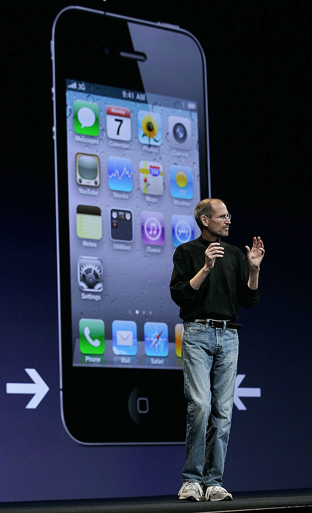 SAN FRANCISCO - JUNE 07: Apple CEO Steve Jobs announces the new iPhone 4 as he delivers the opening keynote address at the 2010 Apple World Wide Developers conference June 7, 2010 in San Francisco, California. Jobs kicked off their annual WWDC with the announcement of the new iPhone 4. (Photo by Justin Sullivan/Getty Images)