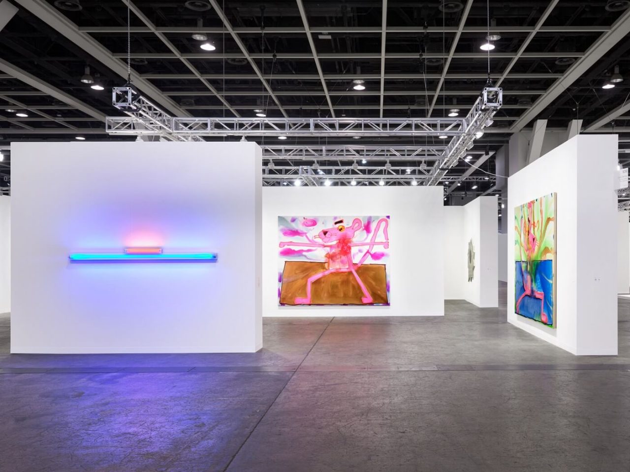 David Zwirner 卓納畫廊作為國際當代藝術畫廊,1993年創立至今帶來多個具前瞻性的展覽。今次帶來極簡主義先驅 Dan Flavin 的作品,霓虹燈管裝置藝術作品“untitled (for Charlotte and Jim Brooks) 1”。值得留意的是,今次畫廊還特別重點帶來年輕藝術家的新作品,包括Katherine Bernhardt、Marcel Dzama、Nate Lowman、Oscar Murillo等,從空間的構建帶來不同年代藝術家的隔空對話。