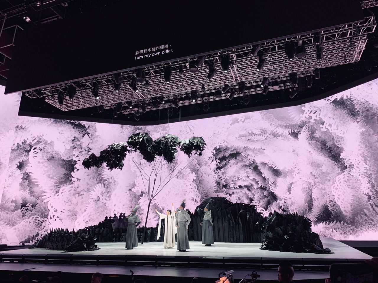說來,澳門美高梅特意推出《華源》藝術展覽,由藝術展策展人、上海當代藝術館執行館長孫文倩主理,藝術裝置及展品遍佈酒店各個角落,尤其以視博廣場藝術空間中的水墨裝置藝術作品最為吸引。當中,嶄新裝置歌劇《驚園》作為《華源》壓軸節目,由藝術家馬文執導及設計舞台效果,《驚園》以昆曲形式,唱出伊甸園與牡丹亭編織的當代神話故事,中西合璧之餘,更銡合高科技舞台裝置藝術,實在嘆為觀止。