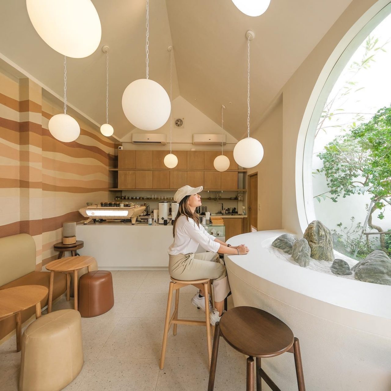 純白色的瓷磚外牆,非常有標誌性,咖啡亦相當不錯,是當地人愛喝的品牌之一,餐廳的旋轉樓梯配上白色外牆,又是一個打卡熱點!