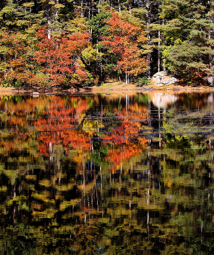 NORTH ANDOVER, MA - OCTOBER 13: Fall foliage is reflected in Brackett pond in the Harold Parker State Forest. (Photo by John Tlumacki/The Boston Globe via Getty Images)