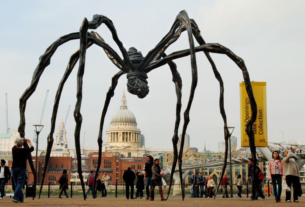 這個泰特美術館(Tate Modern)外面的大蜘蛛雕塑名為「母親」,由美國女雕塑家 Louise Bourgeois 製作,高30公尺,寬33公尺,總重量6,000公斤。殘酷、可怕的外表,其實背後卻代表了母親溫柔的心,而蜘蛛則代表了 Louise 從事織布業的母親。而這個巨型蜘蛛雕塑其他版本亦出現在世界各地的藝術館前,例如加拿大國家美術館、西班牙畢爾包古根漢美術館、日本六本木Roppongi等,相當具標誌性。