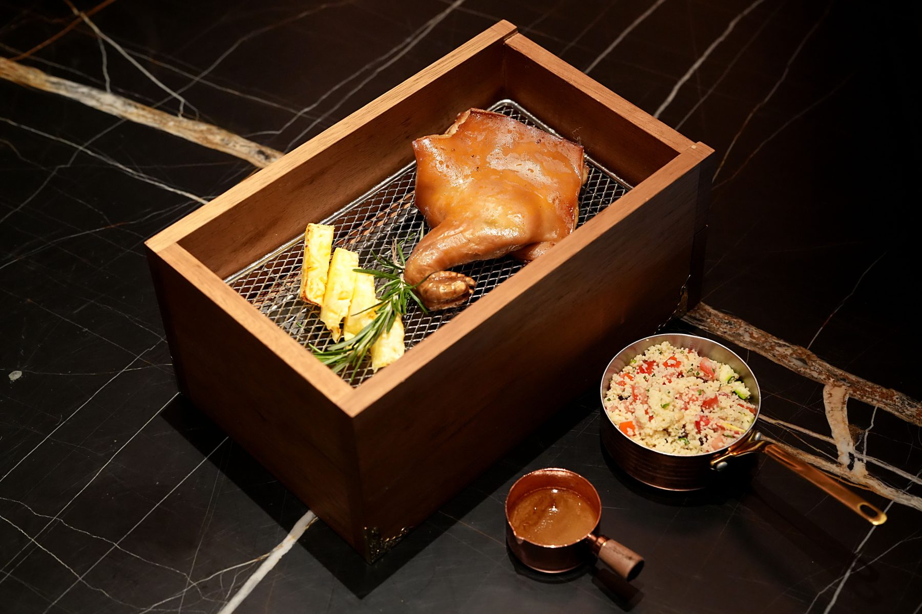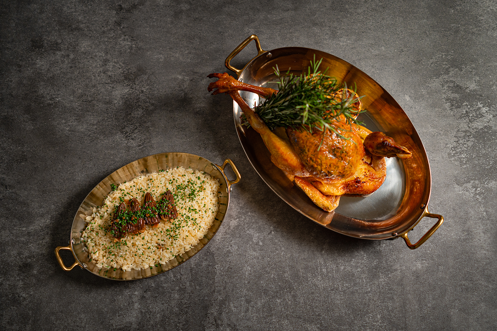 造多款特色佳餚;當中以法式燉飯為藍本,加入本地三黃雞新創「香脆三黃雞配羊肚菌雞油飯」,雞味濃郁,讓人回味無窮;「招牌炭烤 16 安士肉眼牛扒」配上 3 款自家秘製醬汁及 3 款精選伴碟,以不同烹調手法及食材,帶來不一樣的層次體驗。