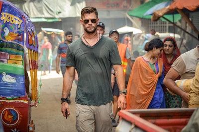 《驚天營救》劇情描述 Chris Hemsworth 沃飾演的男主角Tyler Rake,是一名無所畏懼的黑市傭兵,某天受到印度大毒梟的委託,請他救出被綁架的兒子,但對方卻是國際犯罪首腦孟加拉的最大毒梟,萬萬沒想到這會成為他生命中最致命最危險的任務;其中一段長達 12 分鐘的一鏡到底槍戰更是讓觀眾一陣驚呼,更在開播一個月就在全球飆獲 9,900 萬觀看次數,第一集的亮點在片尾的時候,男主角身負重傷後,中彈倒臥進河裡,留下引人遐想的伏筆。