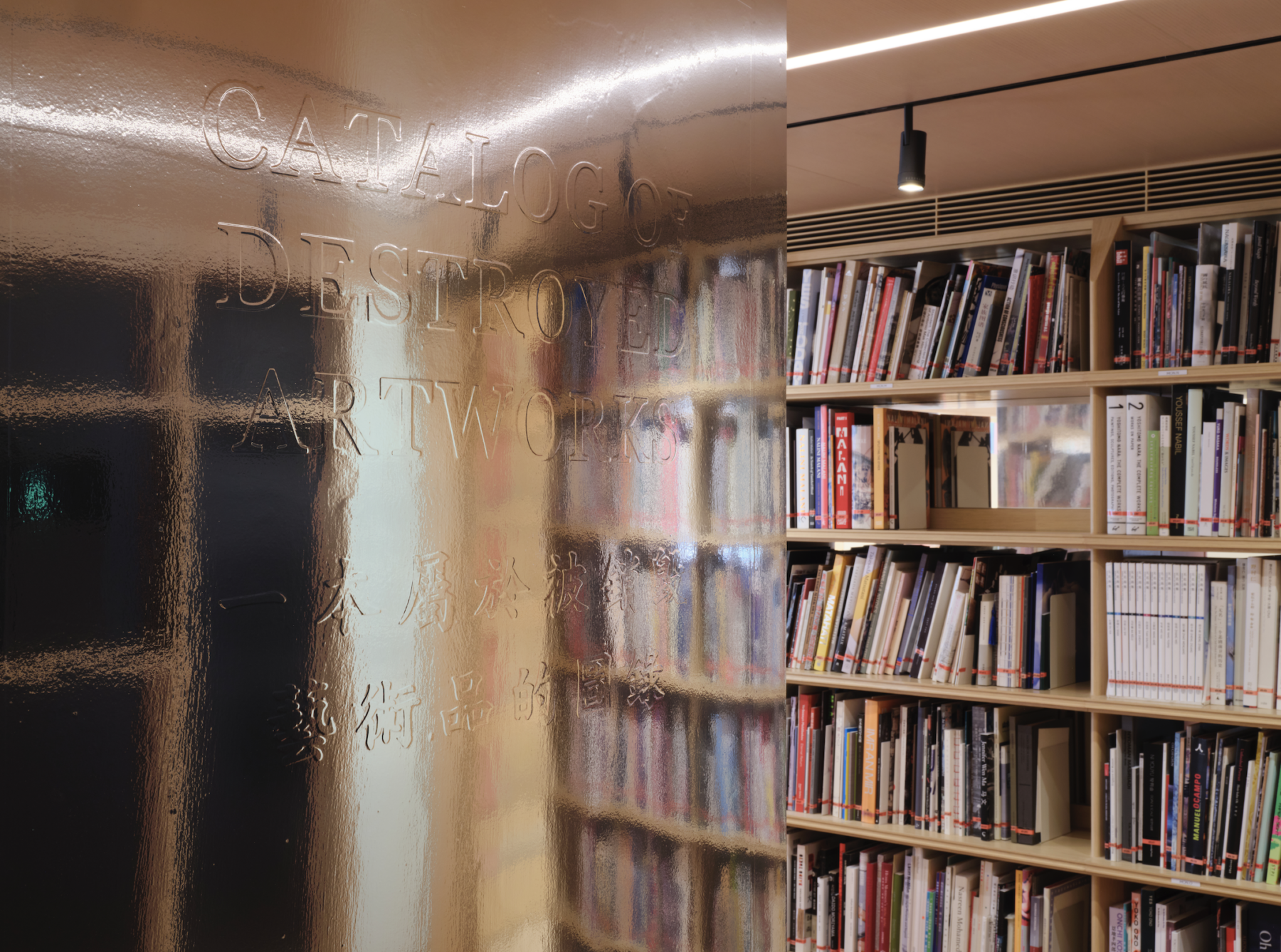 Image: Gala Porras-Kim, Total loss ghost, 2024, acrylic glass, HD video. Installation view,Countering Time, CCG Library, Asia Art Archive, 2024. Photo: South Ho.