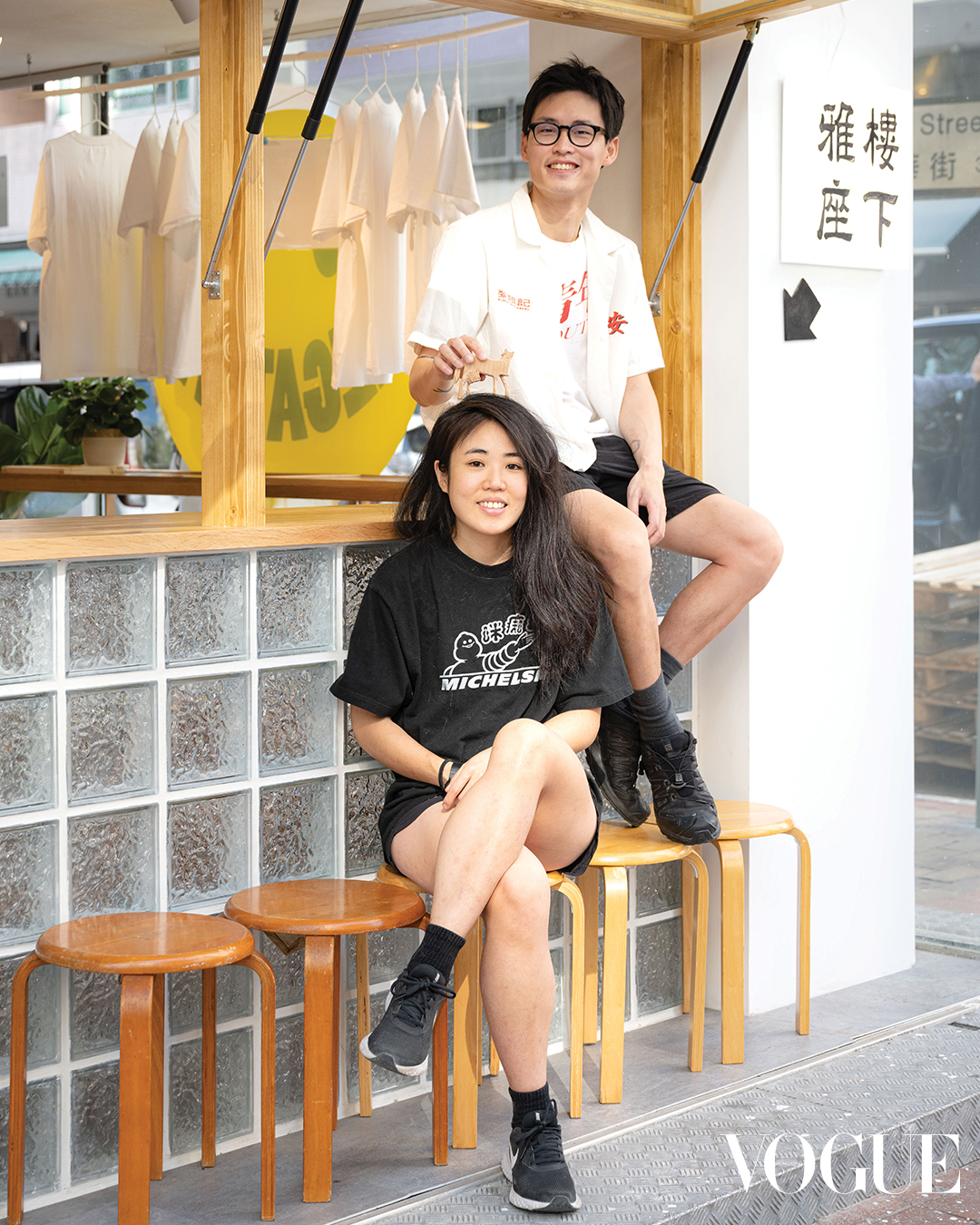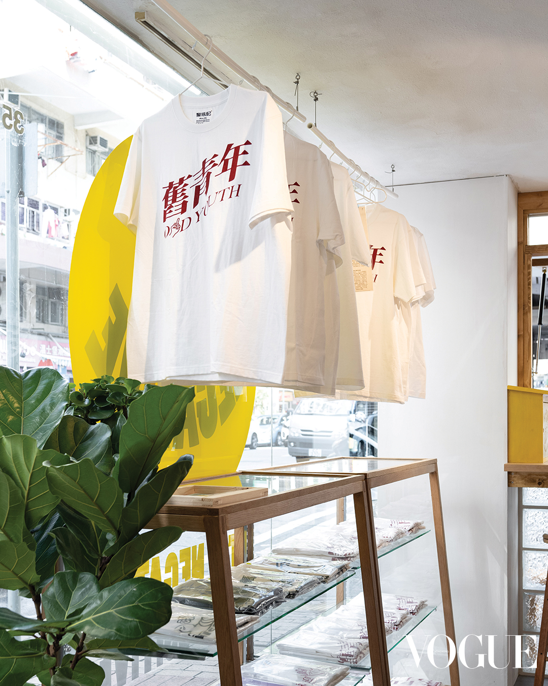 訪問當天是下午三點,到達「黎根記」時看見店主之一 Showroom 緩緩打開鐵閘,巨大的笑哈哈圖案與 “Stay Negative” 字句印在玻璃窗外,顯然靈感來自當下的抗疫日常,卻讓人會心微笑。事實上,深水埗近年小店林立,但大多主題都是講求慢生活的賣物或咖啡店;要形容「黎根記」的話,可能會是貼地、年輕、鬼馬搞笑。創辦人之一的 Showroom 來自本地樂隊新青年理髮廳,他與拍檔 Rebecca 盼望以美術設計表達自己心中想法,於是萌生絲印 T 恤的念頭。「T 恤似乎是最直接有效展示 graphic 創作的方式。從網上店到實體店面大概籌備了一年時間,這裏不像大南街一帶是『名區』,相反較為清靜,可以與經過的路人或街坊好好地聊天。」店內的窗邊位設有木檯與幾張椅子,看似是 Café 的格局,Rebecca 則笑言更像公眾空間。「這裏佔地三百 尺,大部分的裝潢與擺設都是我們一手一腳打造,當中重新與很多舊朋友聯繫,又認識到很多志同道合的新朋友;對於我們來說, 人與人的連繫是相當重要,就像看到顧客對我們的創作而一笑, 這是一件滿足的事情。」