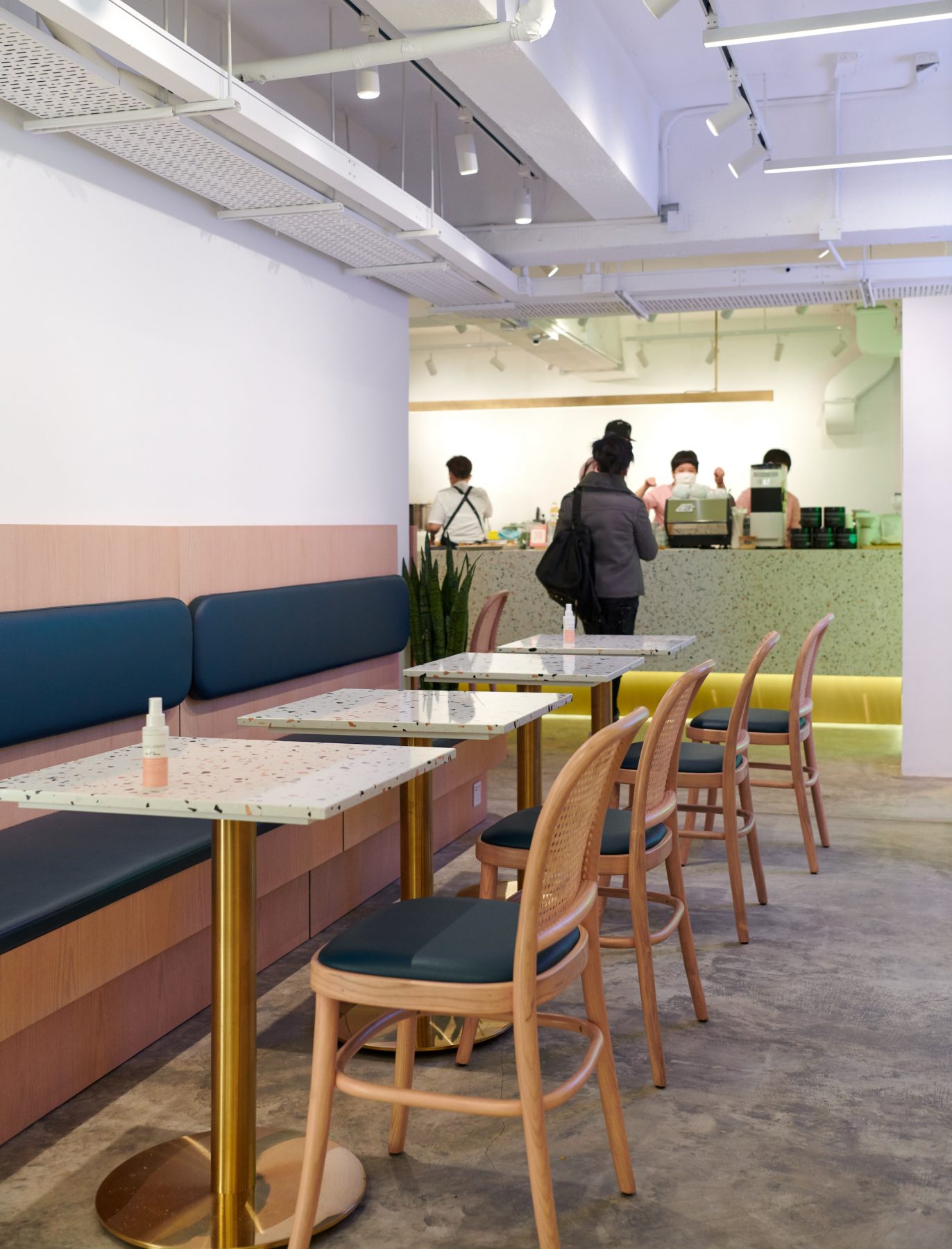 再到裏面就是咖啡店區域,主角則是90後主廚 Phoebe。Joseph 解釋道:「在這裏,Phoebe可以幾天內創作全新的下午茶餐單。」主廚 Phoebe 專程設計了 Good Life All-day Dining Set,有精緻的鹹點及甜點各四種,例如綠茶及朱古力蛋糕,更會加上新鮮手打忌廉及來自本地農場的可食用鮮花。另外還有意粉選項,並會不時改變餐單帶來驚喜。能感受到店鋪從物色產品到給予主廚創作空間,都十分細心充滿正能量。「今年開始,我們由試業變成正式營業,必需有更充足的準備。無論是線上還是線下,都努力為大家帶來更美好生活。」