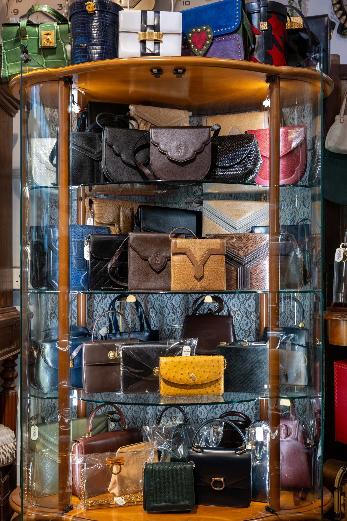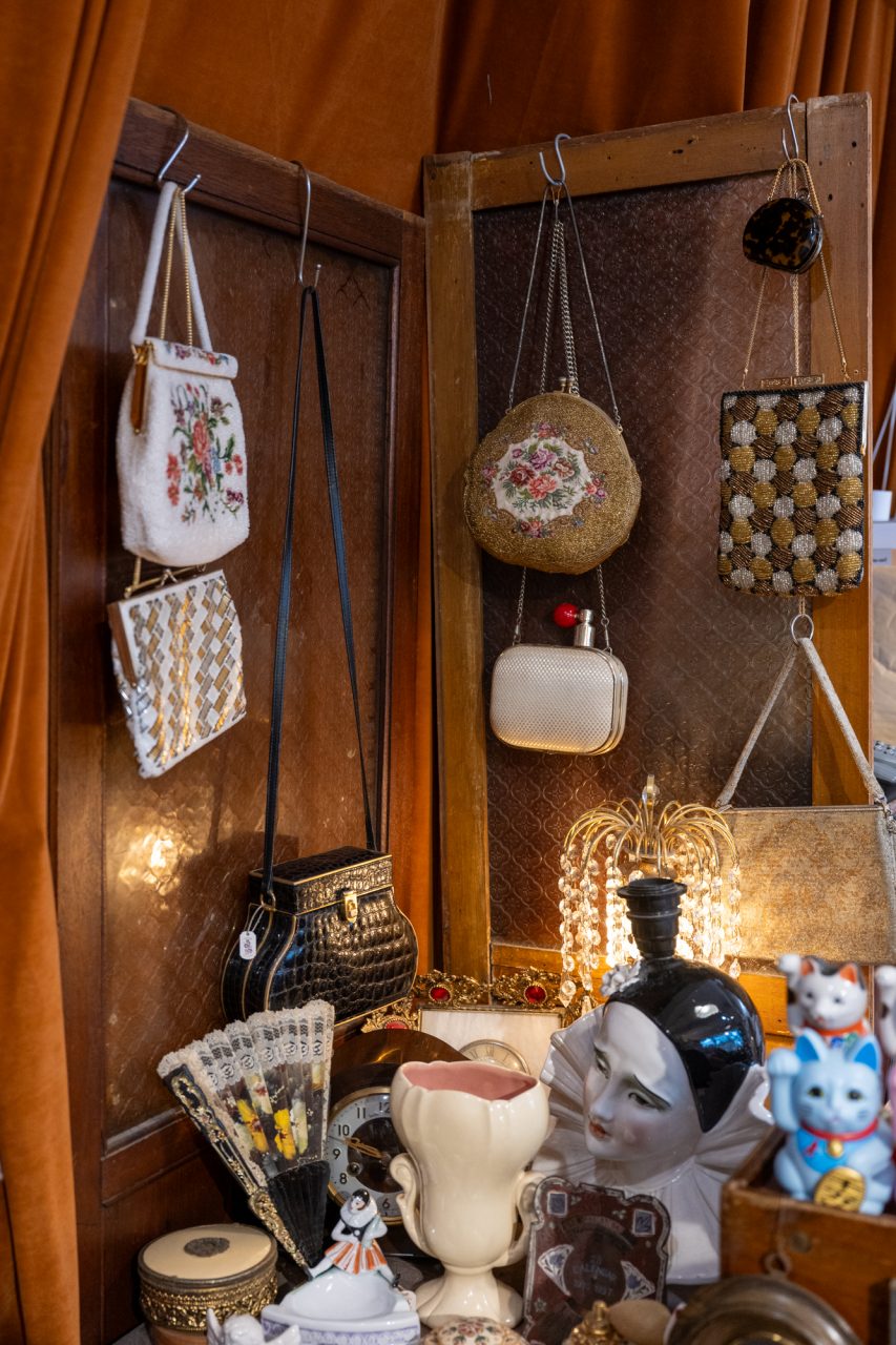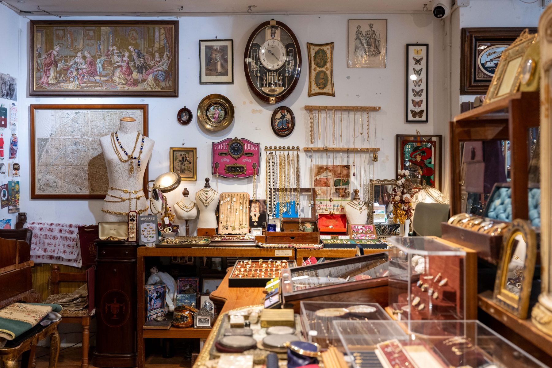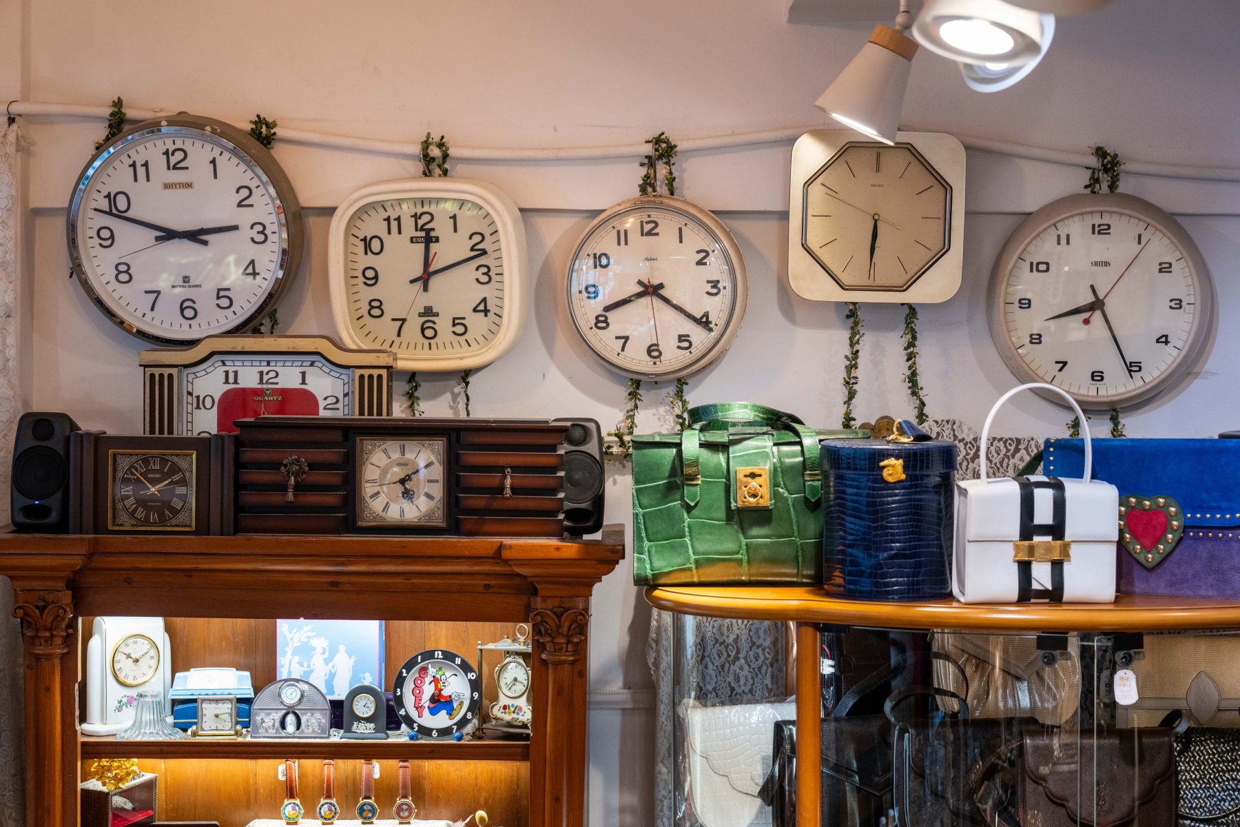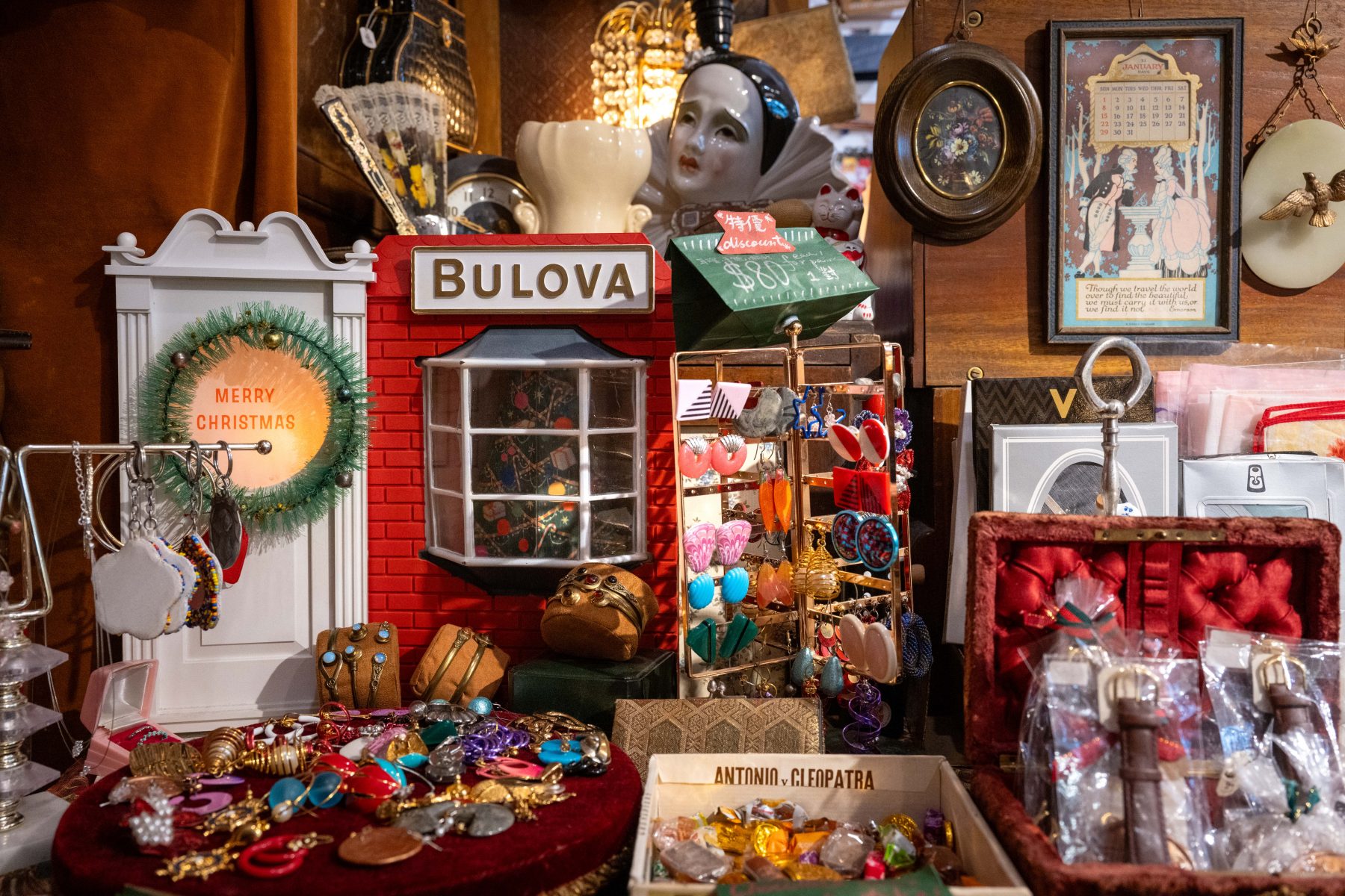 Rubbish B 這間實體店鋪成立於 2017 年,但敏慧在 2016 年的時候就已經在 Instagram 上經營起網店,當時偶爾也會外出擺市集。店鋪面積不大,位於旺角西洋菜南街的一棟唐樓上,店內都是敏慧在旅行途中發掘出來的古著小物 件,大大小小鋪滿了整間店鋪,這些物件有香港製造的手袋和鐘錶,也有小的珠寶首飾、配飾盒,還有一些小的畫作。「就連這個進門的門把手也是老闆從歐洲買回來的,非常復古。」店鋪職員告訴我們。
