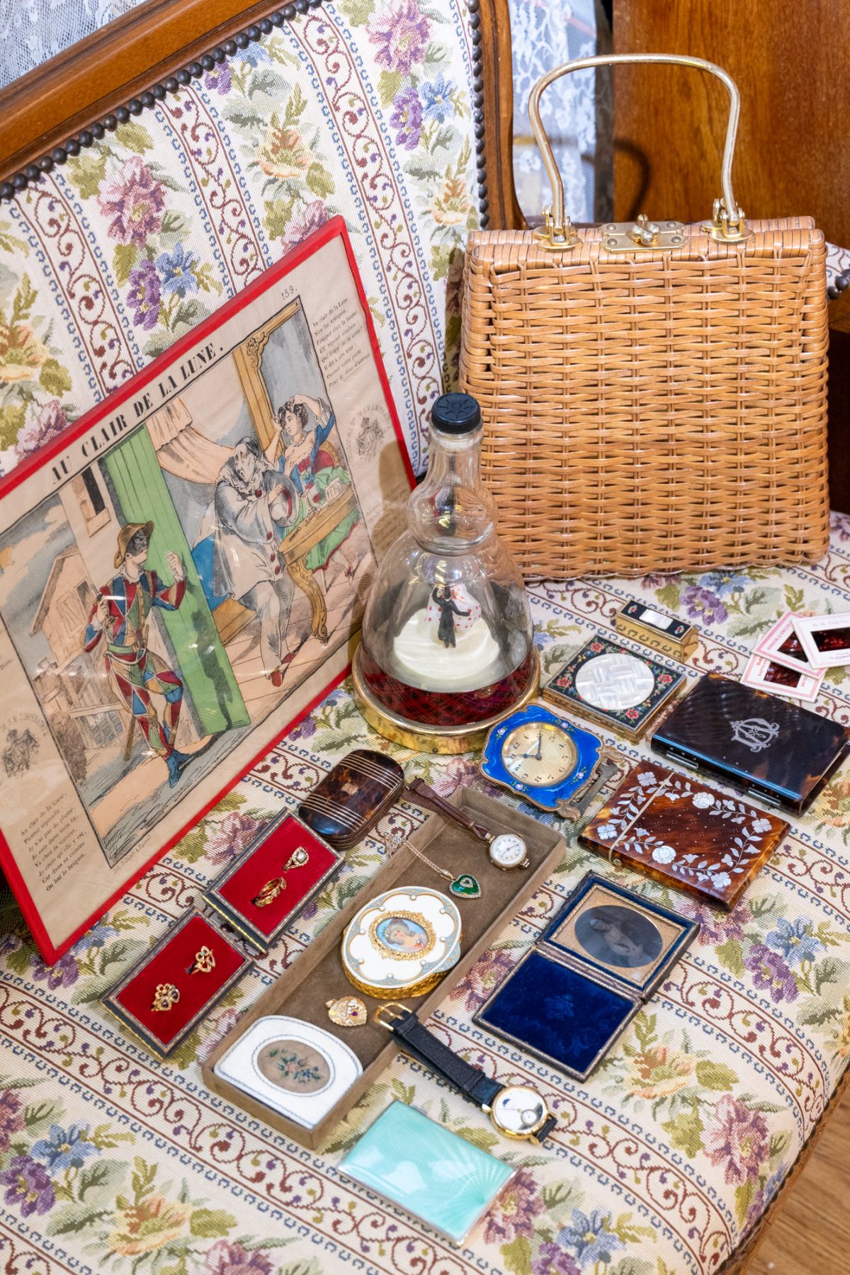 她對此分享道:「例如最近找到的這個小盒子,打開後你會發現裡面原來有那麼多東西,一個小鏡子,一個粉撲,還有放煙的地方;而當我去做 research 的時候,就發現原來這是上個世紀女生剛開始可以外出工作了,帶在身邊的小手袋。」