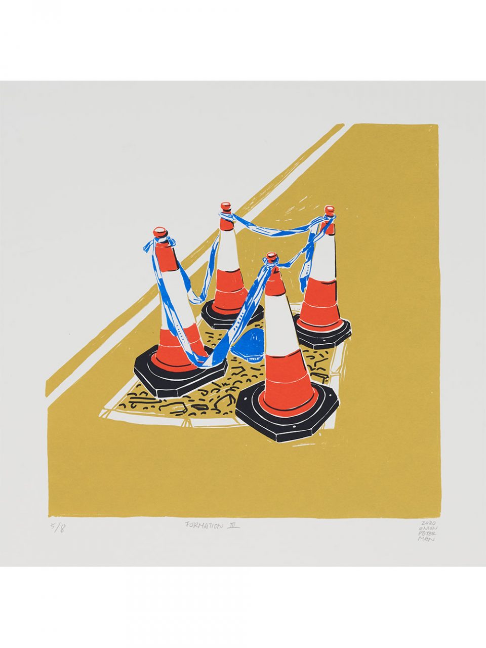 「沒甚麼特別」是Onion Peterman對描繪對象的一種強調,甚至沒有特地走到生活圈以外的地方「取景」,尋常景物就在他的眼中累積成細膩有趣的作品:正在貼街招的工人,在路邊講電話的女生,在空地上如獨島的一棵樹,甚至只是幾個被隨意放在路旁的路錐「雪糕筒」。「我把一系列的『雪糕筒』作品命名為《Formation》,因為我覺得它們的擺位十分引人入勝,它們之間有時似在對話,有時又似是充滿張力,不同的組成都好似在訴說一些甚麼。是甚麼呢?我又不太知道。」