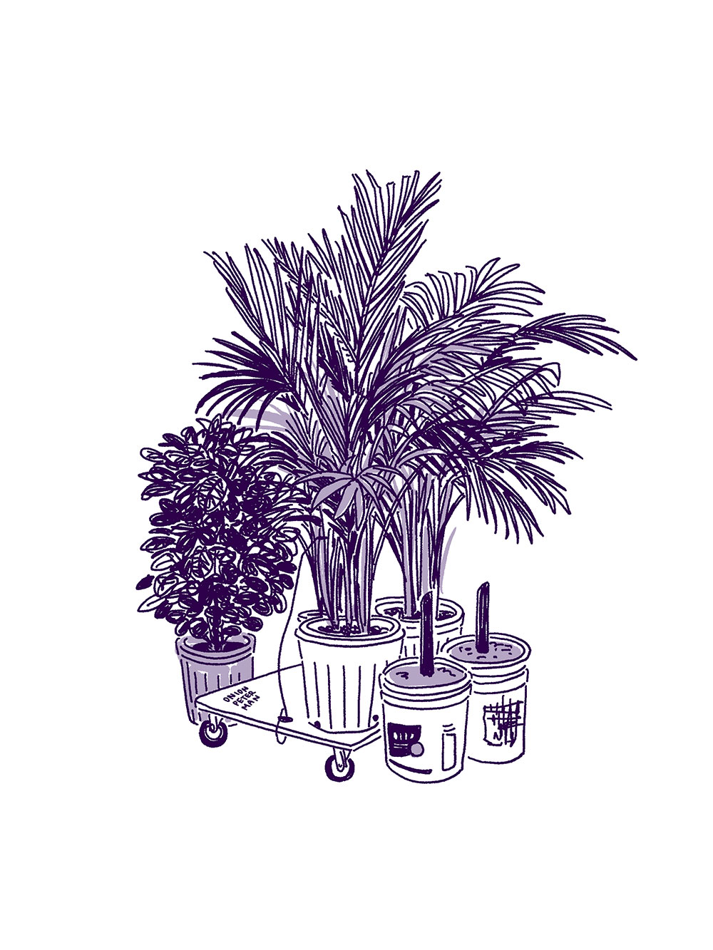 所謂的「很香港」,總是逃不過符號象徵:電車、天星小輪、維港一景、燒賣魚蛋、咖啡奶茶。但說Onion Peterman筆下的作品「很香港」,又是另外一回事。就好像總是捉住我雙眼又說不出所以然、那幾棵放在手推車上的植物,旁邊放着灌了水泥的膠筒,它們甚至沒有背景,但我就是覺得:呀,是香港。「我從來沒有選擇一些『很香港』的景物來繪畫,」Onion Peterman解釋:「就只是純粹把我眼前的景物畫下,就此而已。」