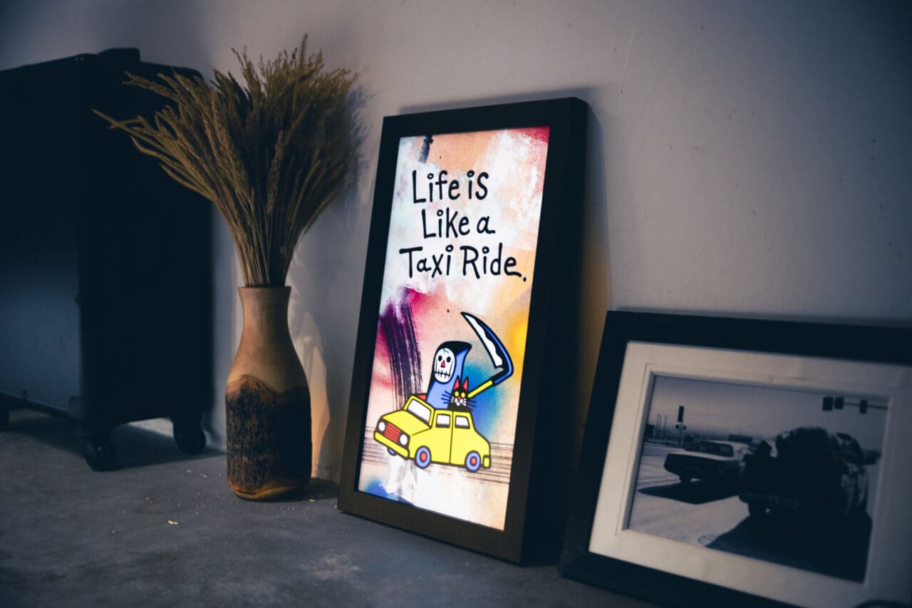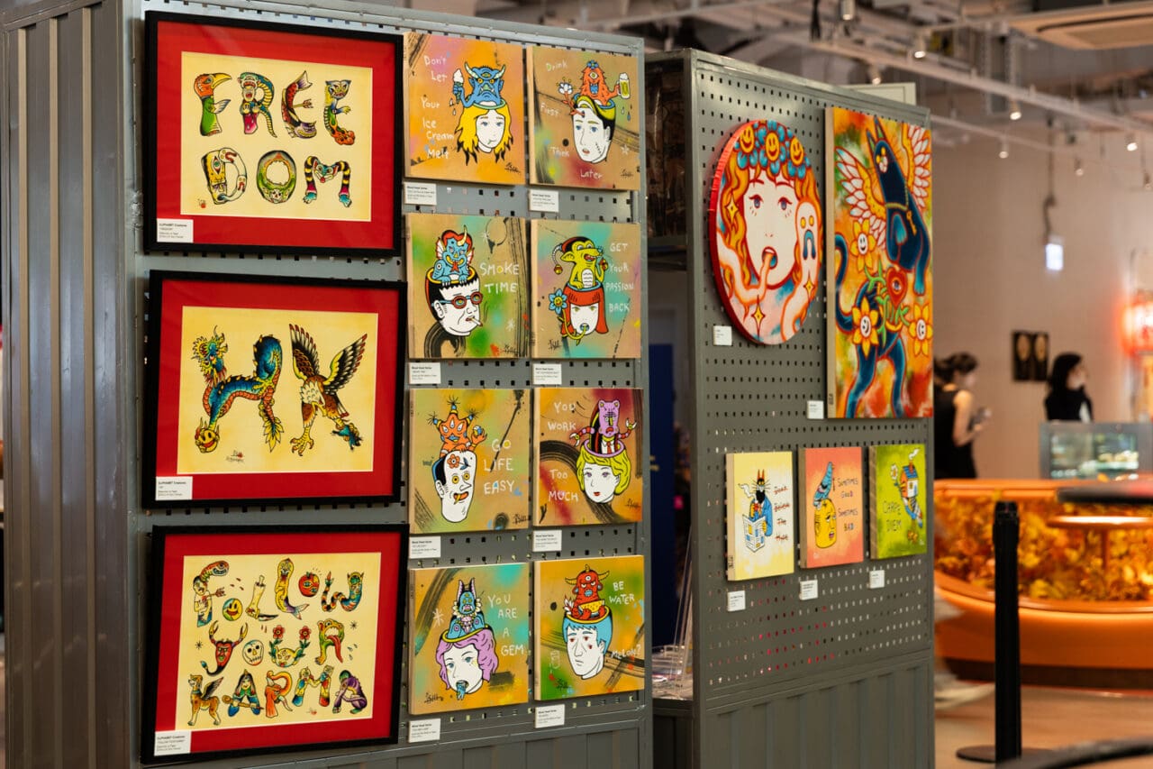 I:首先很感謝這次MOMENTIME的邀請,讓我能來香港舉辦這次pop up展覽,這雖然不是我第一次來香港,但卻是我第一次舉辦這種展覽,能在人流這麼多的地方舉辦展覽讓我覺得很新奇和有趣。這次展覽的作品是我這三個月來特地為展覽而創作的,所以你能看見很多香港的元素和風景,有些來自我的想像和回憶,有些則是我來到這裡之後看到的風景。我希望大家能從我的畫作中感受到不同高低起伏。同時我認為,藝術有很多不同面貌,紋身和畫畫也很不同,從不同角度去感受藝術,正是樂趣所在。