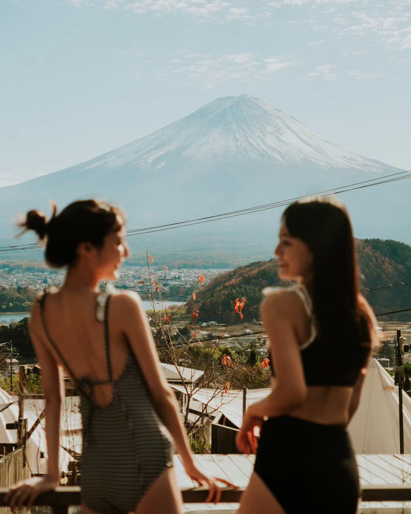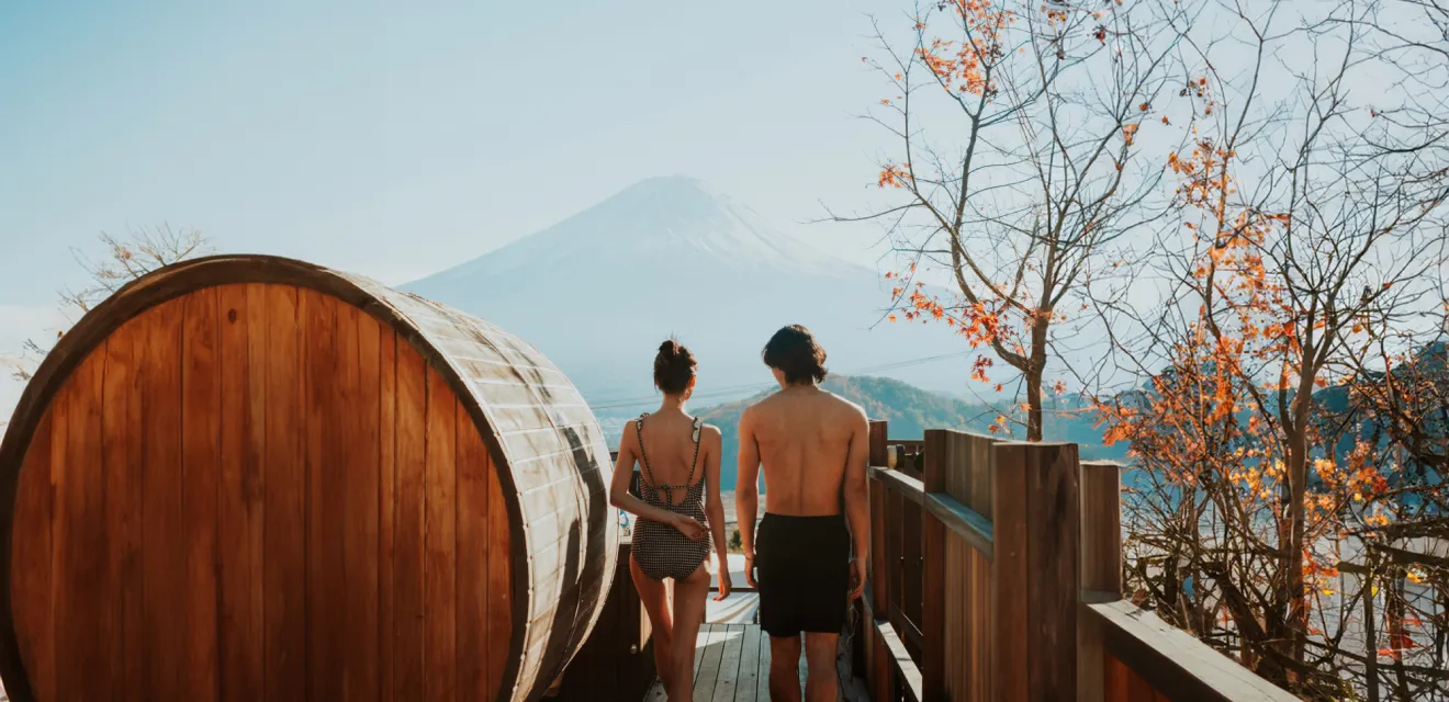 Dot Glamping Fuji更配備了露天風呂,讓遊客可以在戶外中放鬆身心,欣賞富士山的壯闊景致。營地內也設有傳統木桶桑拿,可以在桑拿中遠眺富士山。營地的平台區更適合進行瑜伽和冥想,真正融入在河口湖的美景之中。