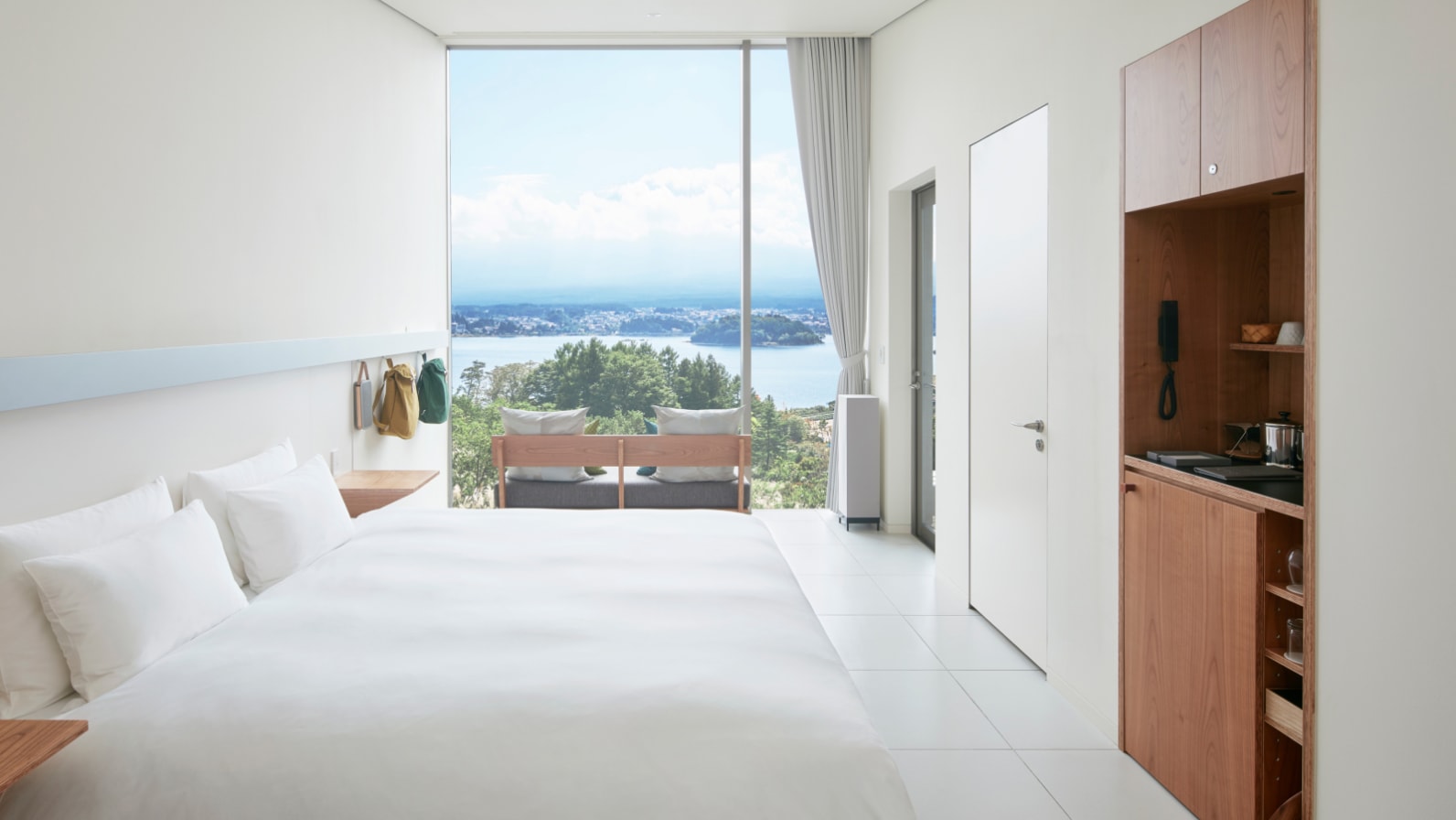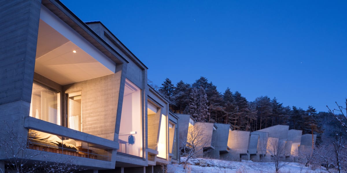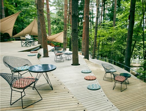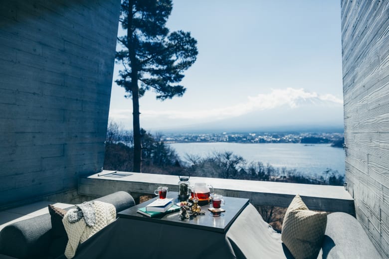 這裡的「箱型」客艙小屋建築設計時尚又客房,以簡約、木製的風格為主,有三分一空間為戶外露台客廳,彷彿融入雲縫間窺看湖光山色。住客可以一邊欣賞富士山,一邊享受豐富早餐,入夜後更可觀賞漫天星空。冬天時也能在房內的壁爐旁,享受溫暖爐火。這裡還提供許多獨特的體驗活動,可以享受DIY的樂趣,一嚐劈柴和自製美味薄餅烤肉的滋味,讓住客能更貼近大自然,感受不一樣的戶外生活。住客可漫步在佔地6公頃的廣闊森林裡,體驗各種戶外活動,如登山、遊湖。