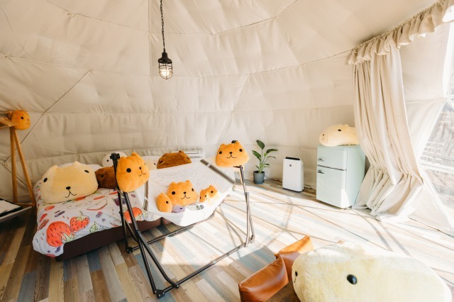 位於伊豆仙人掌動物公園中的Isz Shaboten Village (伊豆シャボテンヴィレッジ)酒店,開設了5個全新的動物主題Animal Camp豪華露營帳篷,以動物及大自然為設計概念所打造,有恐龍主題、與人氣角色水豚君聯名的房型。