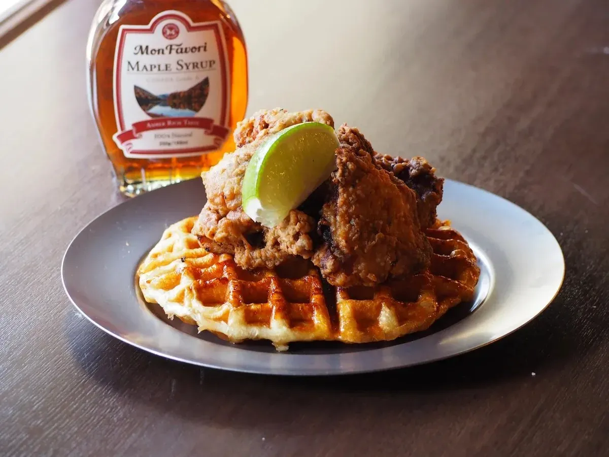 這家店將「パンとエスプレッソと麵包與濃縮咖啡」的招牌產品,充滿黃油、柔軟至極致的食麵包「ムー」進化為鬆餅,命名為「ムッフル進化版鬆餅」,外脆內軟的雙重口感令人耳目一新。店內的招牌菜是創新的「鬆餅&雞肉」,包括五種香料調味的多汁炸雞,搭配來自丹後產的「琴引之鹽」和蜂蜜的炸鳥天,還有用美乃滋與檸檬調味的唐揚雞,三種口味的搭配讓人回味無窮。這些鬆餅帶來的絕妙味覺平衡,與一般甜點鬆餅截然不同。