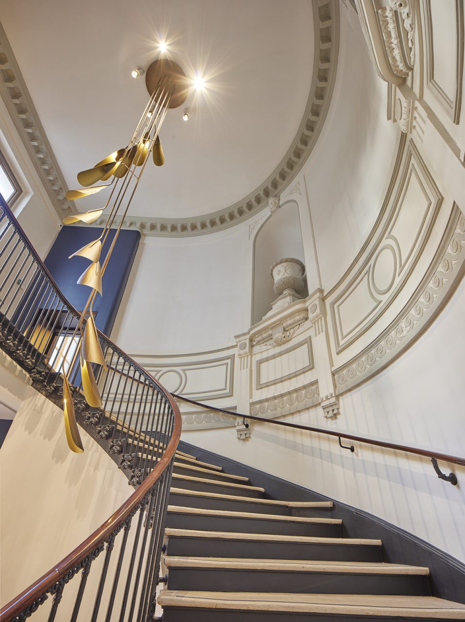 Macdonald: 首先,它位處林蔭大道,附近有很多拱廊街,也是很多家庭、遊客常到的地方。相比起巴黎芳登廣場的校舍,這裏更容易讓大家推門而進,認識更多 L’ÉCOLE 珠寶藝術學院。此外,這裏交通便利,又被濃厚的文化氣息包圍,步行十分鐘便可抵達歌劇院,周遭都是劇院、拍賣行和畫廊,走進 L’ÉCOLE 彷彿像避靜(retreat)一樣,但同時間你又可透過窗戶一窺熙來攘往的街道。再者,自 Hôtel de Mercy-Argenteau 於十八世紀興建以來,它從未對外開放,一般而言,在巴黎的歷史建築絕少開放予公眾參觀,因此我們非常榮幸能將這裏打造成為珠寶藝術學院,這是難能可貴的事情。