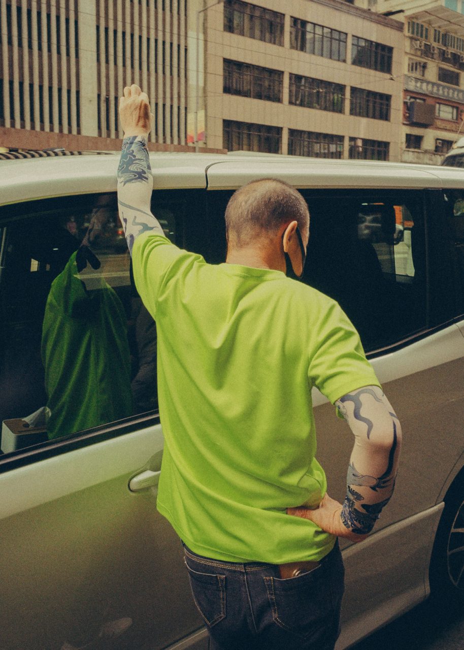 雖說並沒有特地挑選拍照地點,但 Leungmo 坦言深水埗始終是她最喜愛的取材地方。「相比中環、銅鑼灣一帶的人穿衣服偏向品牌與潮流,深水埗的人們實在有趣太多了。很多街坊都有各自一套風格與個性,他們也不理別人目光,完全忠於自己的喜 好,將個人風格成為一種 statement。」於是路人的穿衣日常成為了她鏡頭下的恆常主題,從充滿創意的防疫裝備、超脫常理的配襯方式、到叫 Leungmo 完全着迷的 slogan tee。「他們身穿的 slogan tee,都有着意義非常宏大的字句。有時遇上心情煩燥或低落的日子,那些 slogan 更成為了人生的答案。」“I Love Hong Kong”言簡意賅,“Focus on the good”是正面提醒,「香港穩百業興」不就是元首級寄語。「好幾次讓我本來難過的心情馬上輕鬆了不少。」上天從沒給你指引?也許是你看得未夠仔細。