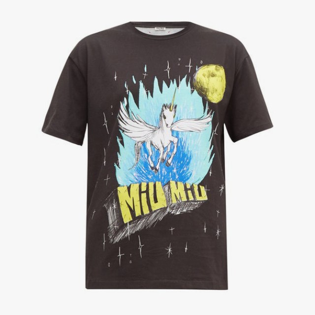 MIU MIU Unicorn-print t-shirt; HKD$5,150 at 24s.com