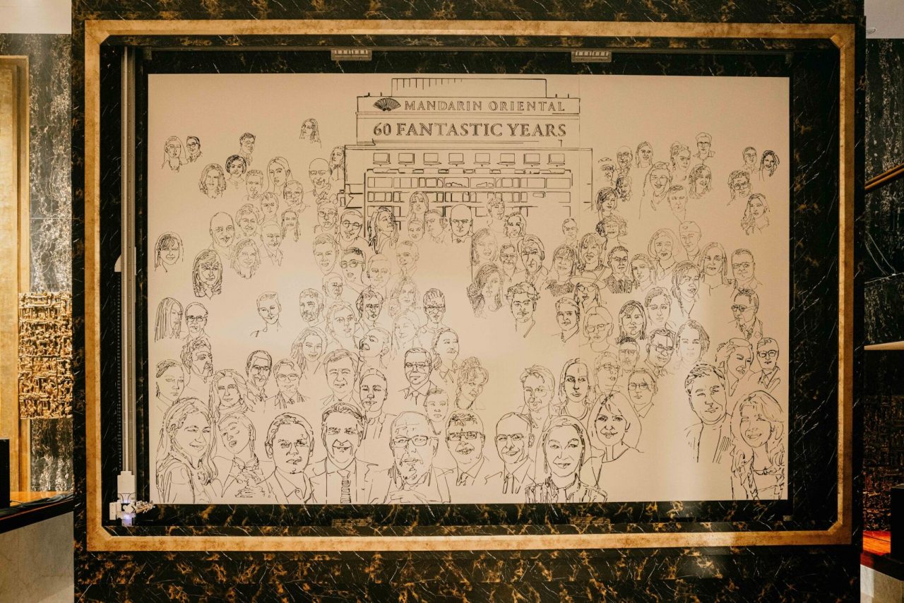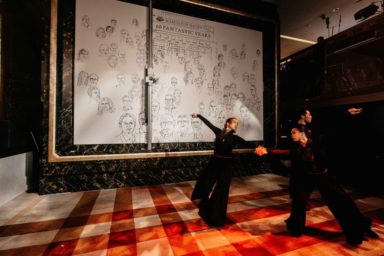 酒店總經理兼地區營運副總裁達奧尊先生(Greg Liddell)和文華東方酒店集團行政總裁 Laurent Kleitman 先後發表歡迎辭和與嘉賓祝酒後,為嘉賓們呈獻由 Studio Art & Commerce 全球首創的人工智能創意畫作《Sir Peter Blake x AI Artist》,配上香港得獎作曲家兼導演鍾恩泰先生(Eddie Chung)特別創作的配樂《The Beating Heart of Hong Kong》,以紀念這個重要的里程碑。人工智能藝術家會根據「普普藝術教父」兼文華東方酒店的忠實粉絲 Sir Peter Blake 設計的拼貼作品,以及來賓的照片即場為他們描繪實時肖像,一同成就這幅 5 米乘 3.4 米、由上百幅肖像組成的紀念拼貼畫作,將嶄新科技揉合傳統工藝,演繹香港文華東方酒店自 1963 年開業以來的創新精神、個性化服務及匠心細節。