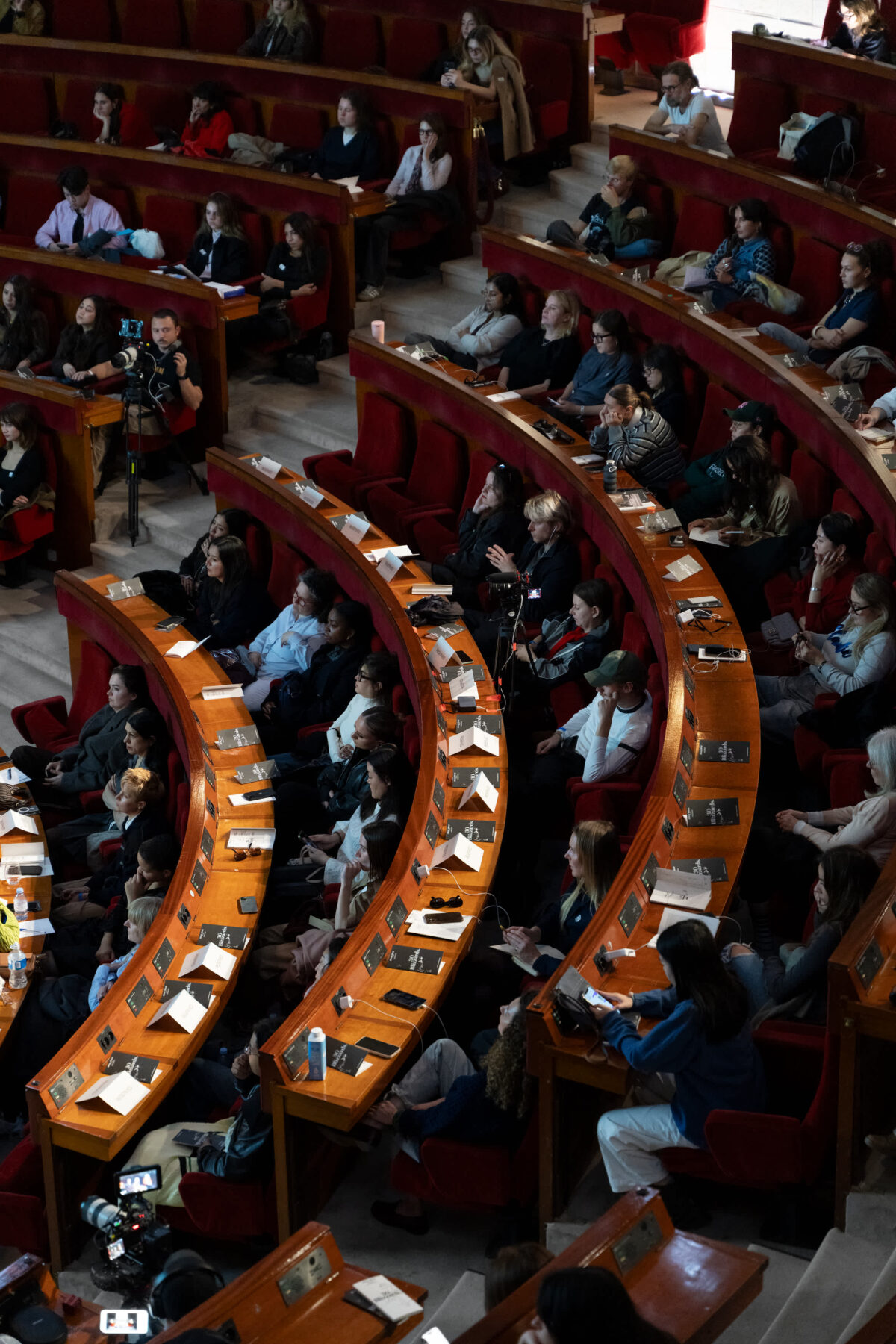 坐滿了的Palais d'Iéna的半圓形會議廳