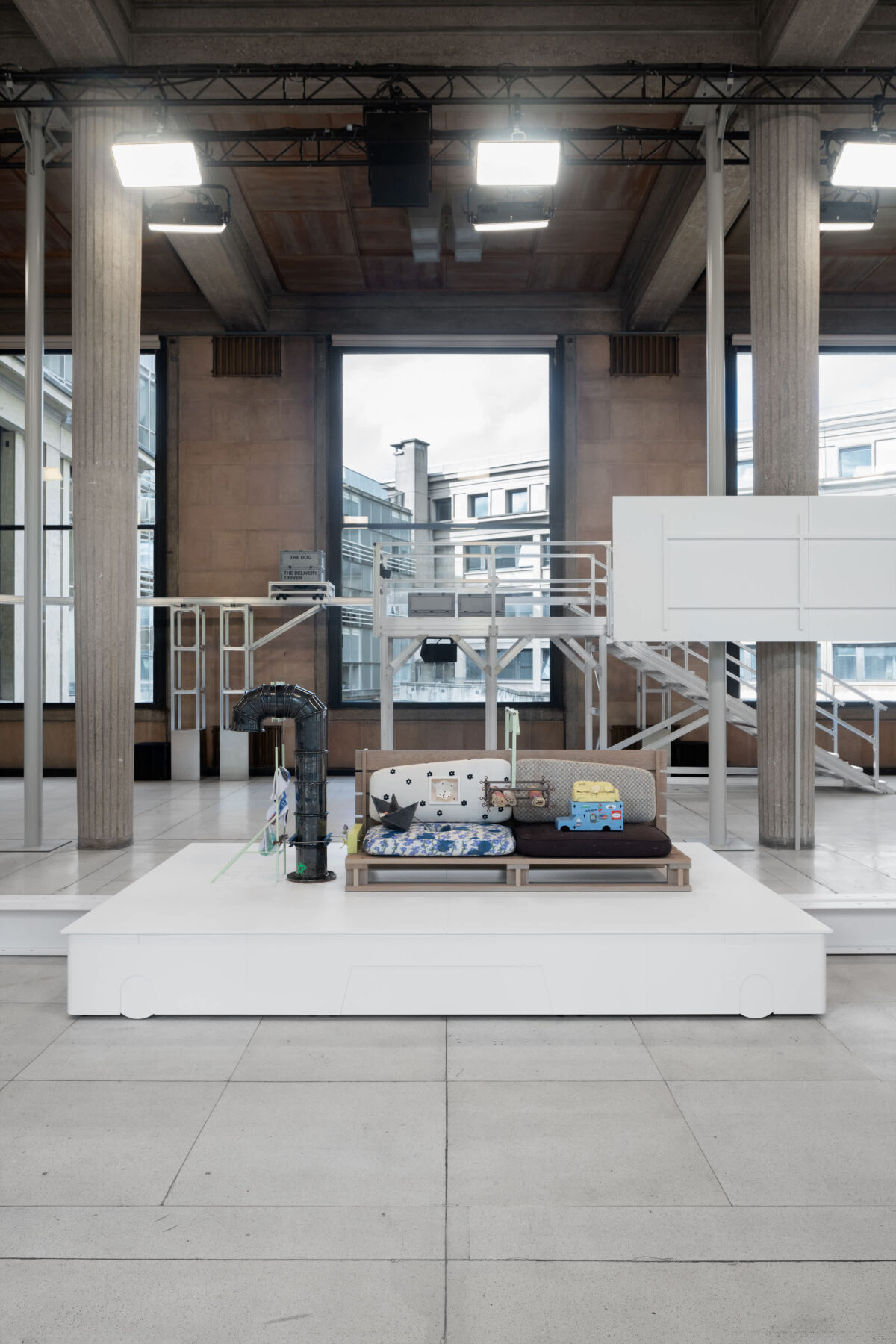 表演的核心是由三十位表演者飾演的三十個角色。每位表演者都被賦予獨特的「情緒天氣」,在歌唱與言語之間轉換,穿梭、舞動、奔跑於Palais d’Iéna,佔據著不同空間。這場與劇場及歌劇導演Fabio Cherstich密切合作的表演中,角色的命名和主題豐富多元——有天氣系統、動物、原型角色,甚至純粹的姿態或感受。試想「Kindness」、「Rain」、「The Oracle」,以及「The City」和「Asphalt」。他們的語言和文本爆發使他們既是獨立個體,又是協作群體。同樣地,他們之間的遭遇——指尖的輕觸、對視、擁抱——創造出連結的時刻,匯聚成一個意義重大且充滿希望的整體。