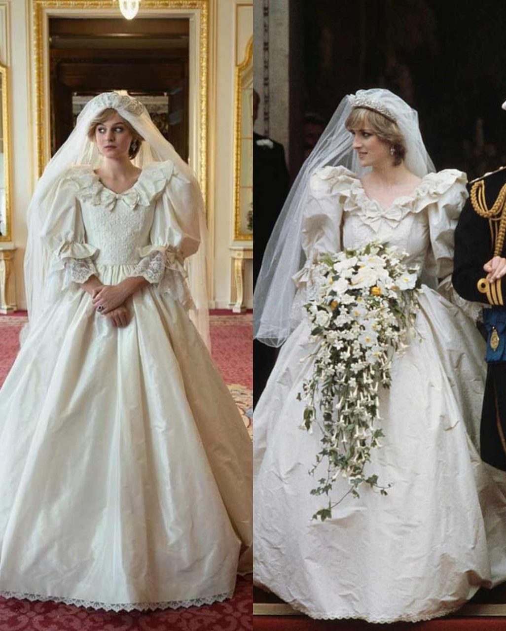 Netflix《The Crown》第四季的第三集 “Fairytale”,也就是戴安娜王妃和查理斯王子結婚的情節,而觀眾只能夠在官方 Instagram 上才能看見婚紗全身的造型,就連電視劇內也只剩下頭紗和婚紗背面的鏡頭,而Emma Corrin 指出:「對婚禮的描寫對劇情並不關鍵,我們從不為了『重現』而重現。」
