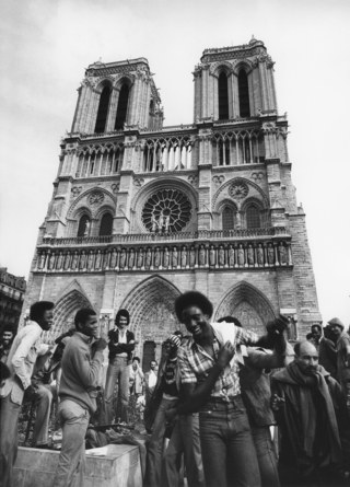 1988年,一群人在巴黎圣母院前載歌載舞。 Photo by Rudolf Dietrich / ullstein bild via Getty Images