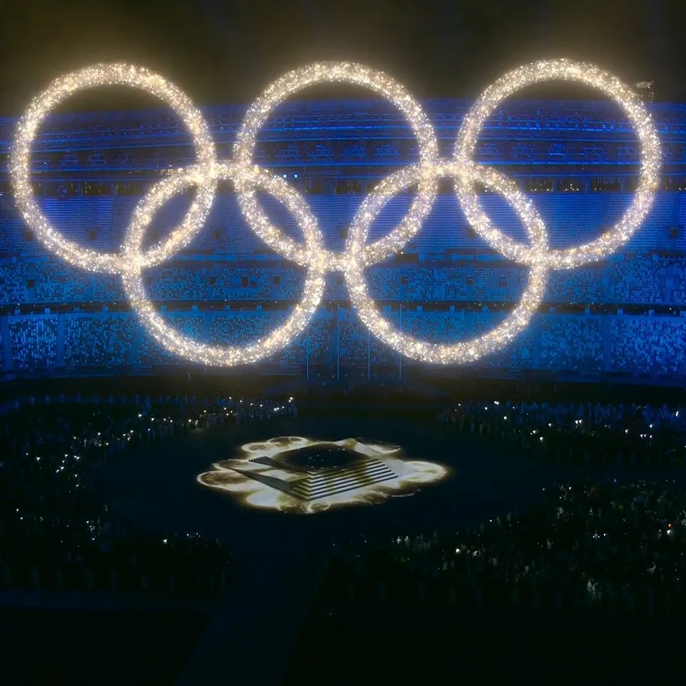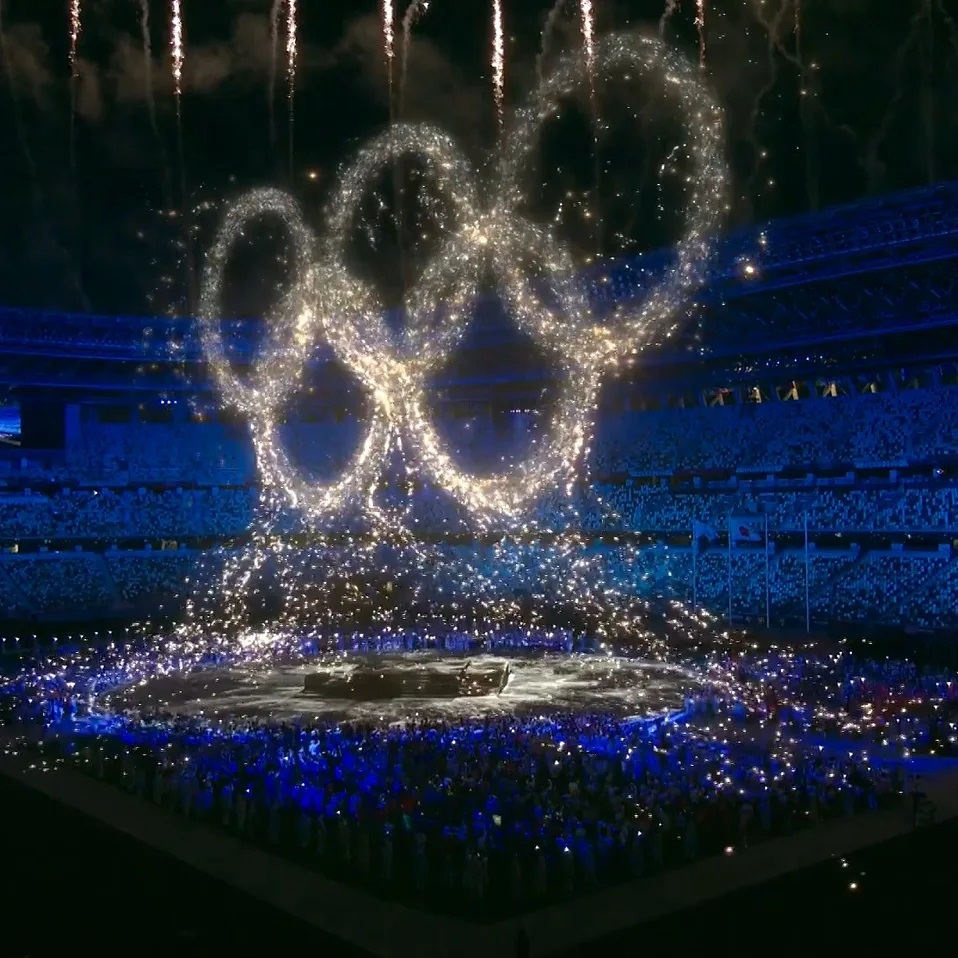 運動員出場後首個表演以燈光為主,而且這些燈光是由運動員發放出來,由燈光組成一個運動標誌,比任何一個teamLab更美,也象徵著奧運是每一個人也有份參與。
