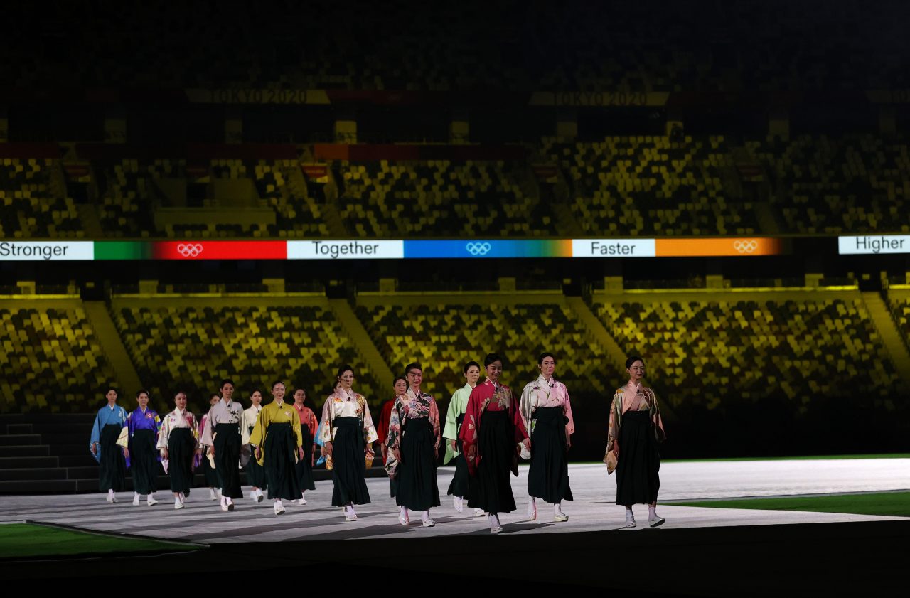 TOKYO, JAPAN - AUGUST 08: Dancers perform during the Closing Ceremony of the Tokyo 2020 Olympic Games at Olympic Stadium on August 08, 2021 in Tokyo, Japan. (Photo by Steph Chambers/Getty Images)