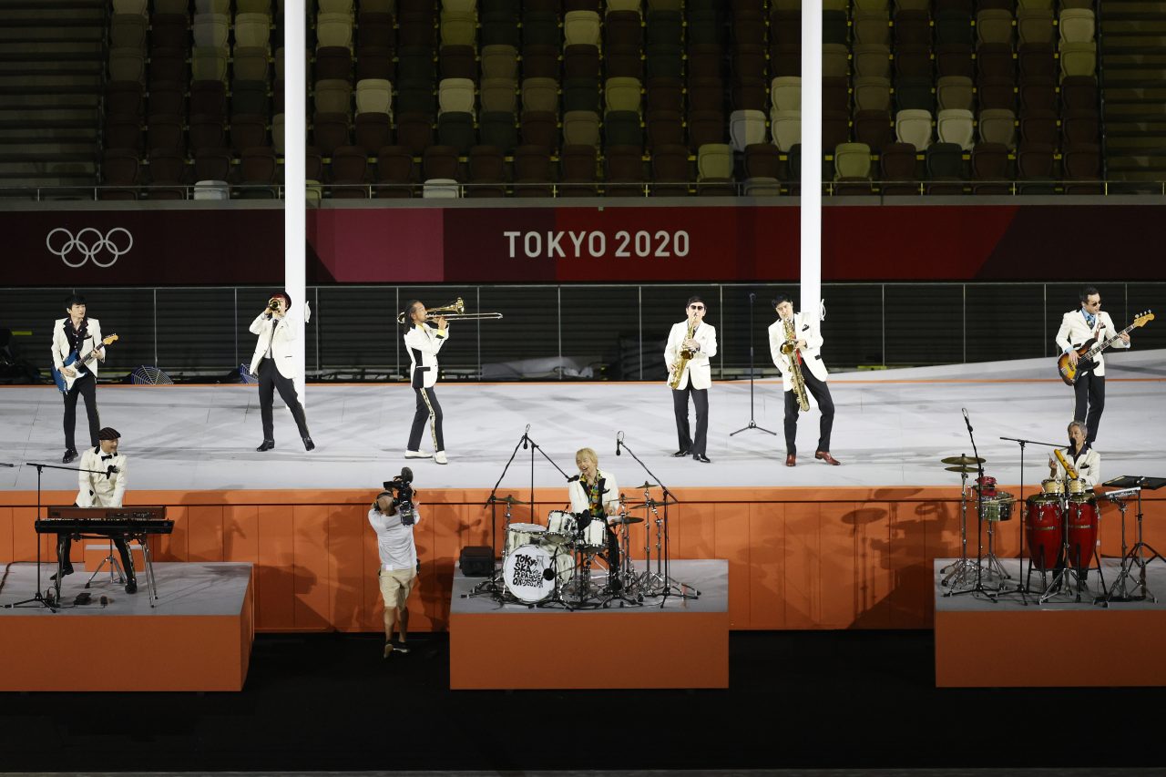 TOKYO, JAPAN - AUGUST 08: Tokyo Ska Paradise Orchestra perform during the Closing Ceremony of the Tokyo 2020 Olympic Games at Olympic Stadium on August 08, 2021 in Tokyo, Japan. (Photo by Steph Chambers/Getty Images)