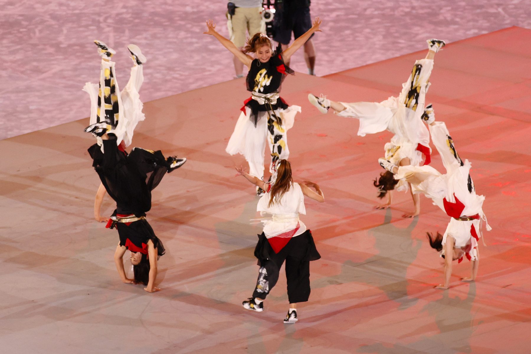 TOKYO, JAPAN - AUGUST 08: Dancers perform during the Closing Ceremony of the Tokyo 2020 Olympic Games at Olympic Stadium on August 08, 2021 in Tokyo, Japan. (Photo by Steph Chambers/Getty Images)