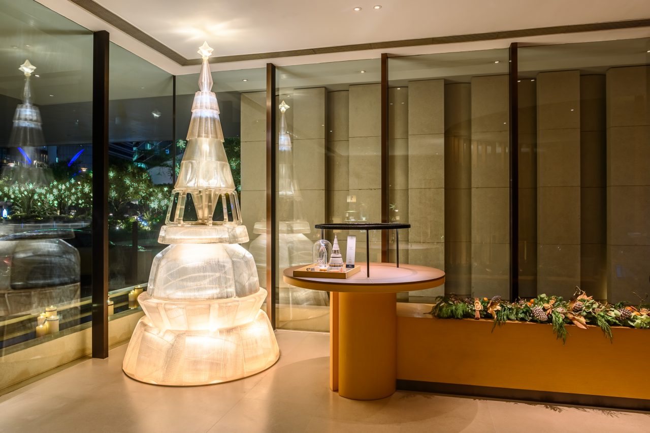 觀察敏銳的大家一定會發現這些半透明的象牙白傢俱,似乎有點熟悉?去年12月的時候,Editecture 便與奕居 The Upper House 製造一顆100% 升級再造的聖誕樹。「當時我們與 The Swire Hotel 集團合作回收月餅盒,以永續核心概念設計出家具收藏系列。而那次成功的合作也得到奕居的青睞,為他們設計聖誕樹的設計師。我們則把可持續性推向極致,創造出一個零浪費、100%升級再造物料和100%可被分享的聖誕樹,要知道聖誕節過後總會有成千上萬的垃圾製成。」