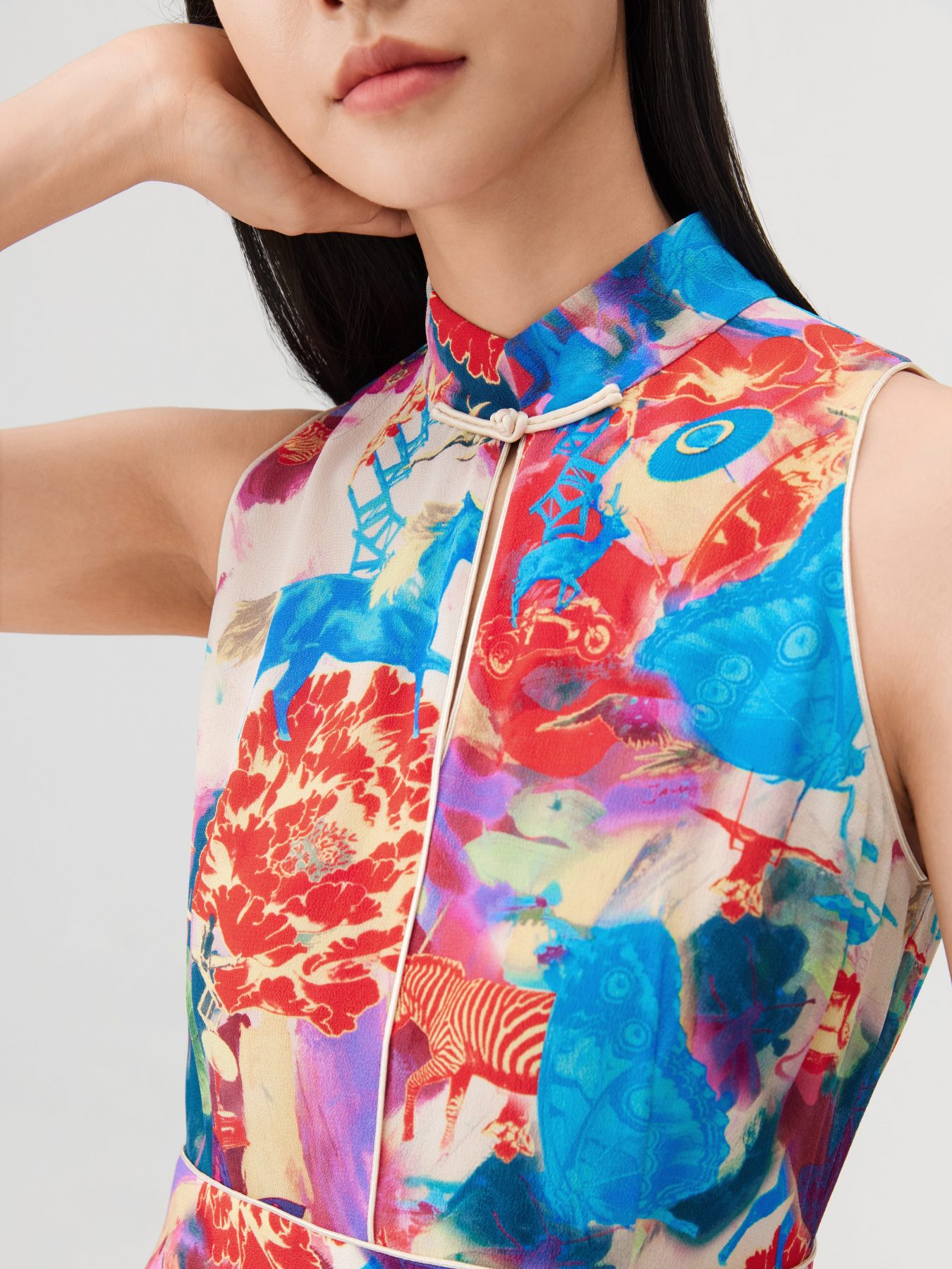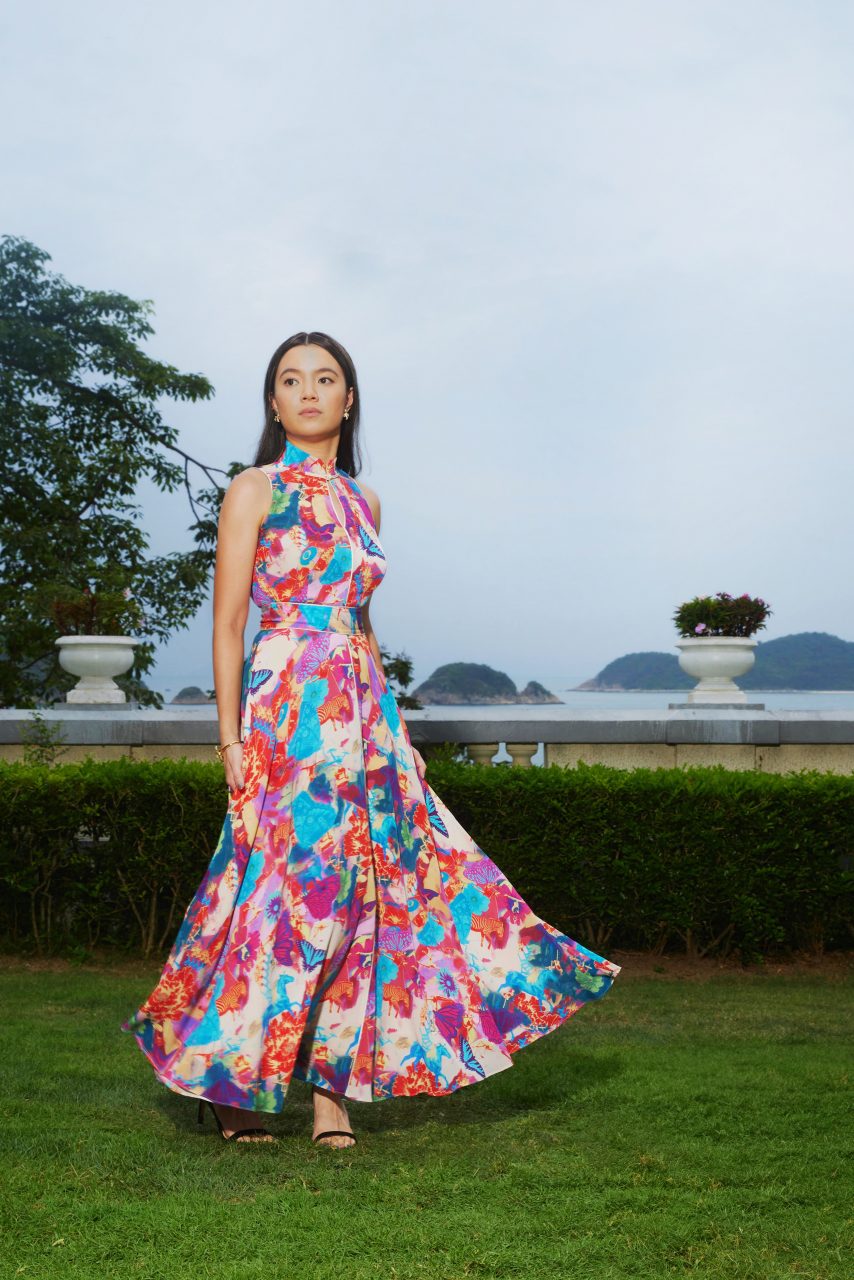 旗袍展現了中國女性之美,也承載着中華民族的智慧和美學。這個新系列亮點是旗袍設計的真絲印花連衣裙,將浪漫奔放的畫作融合中國古典立領剪裁,營造出唯美且焕然一新的感覺。隨風飄動裙擺展現女性的玩味個性和藝術氣息,不僅適合重要場合穿着,更是設計摩登且易穿的日常服飾。