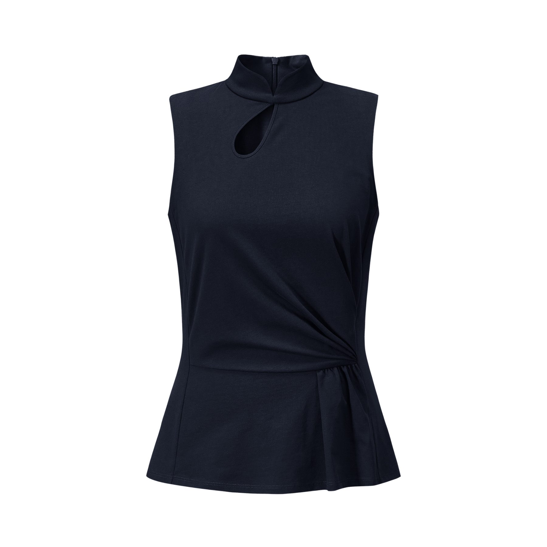 如果你喜歡以簡約顏色為主的服裝,一件中式立領無袖上衣可能會成為你的心頭好。這款上衣以簡潔的深藍、白色調為主,配搭鏤空的細節,滿足了低調奢華的品味需求。