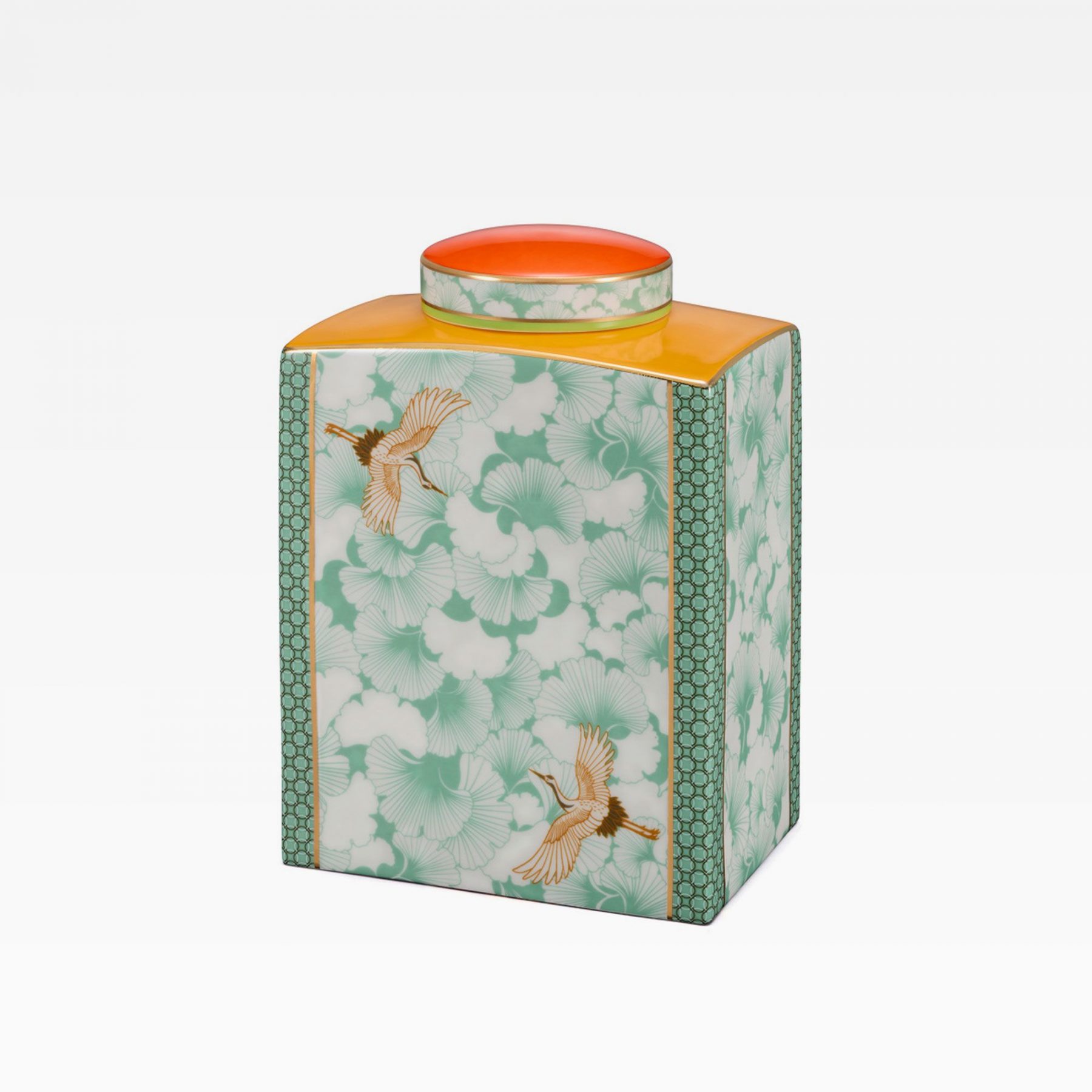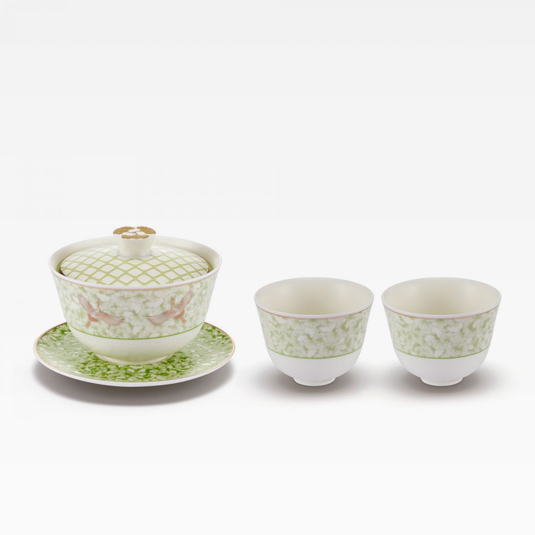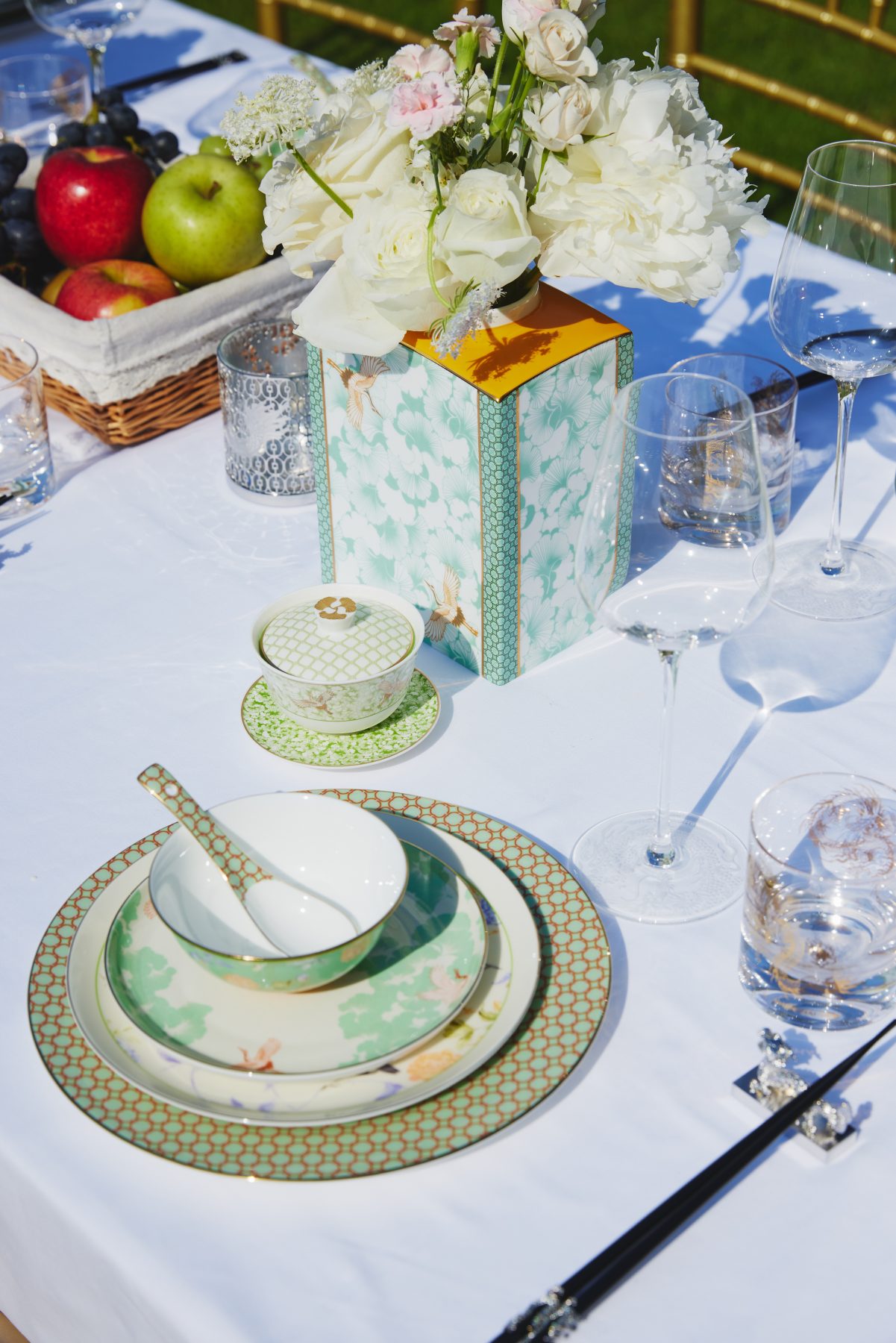 「仙鶴遊園」系列將仙鶴和銀杏葉等富有靈動感的意象融入設計中,打造出淡綠色的蓋碗茶套組、清新脫俗的骨瓷方罐、以及骨瓷碗碟和珠寶盒等。這些作品詮釋了春夏明媚的詩意,探索當代中國精緻風格,展現獨特藝術風格和卓越質感。